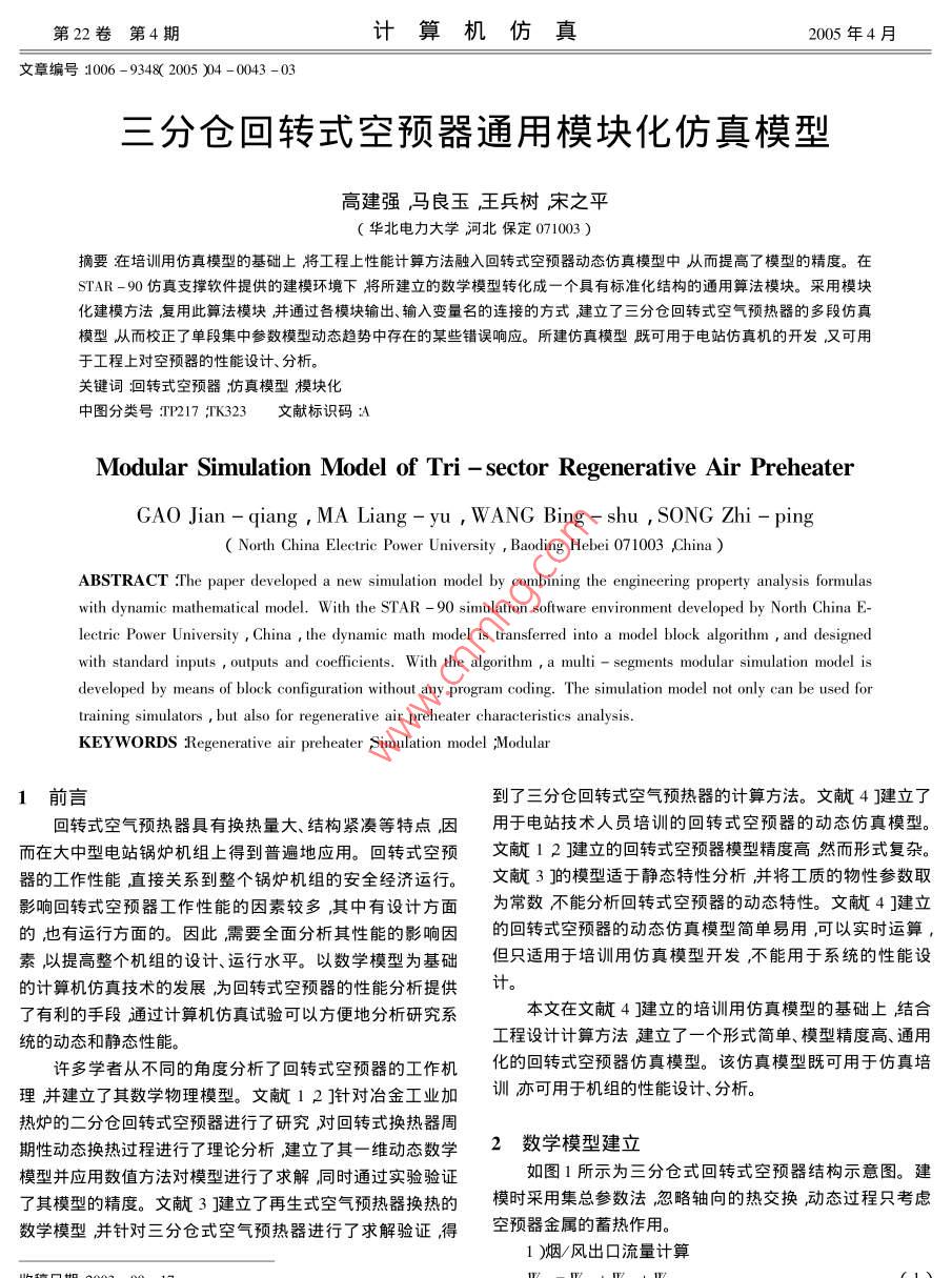 三分仓回转式空预器通用模块化仿真模型