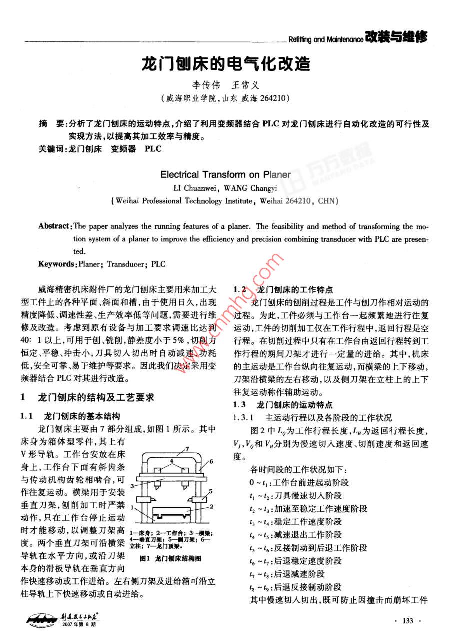 龙门刨床的电气化改造
