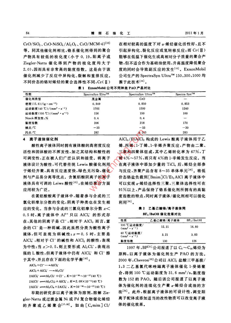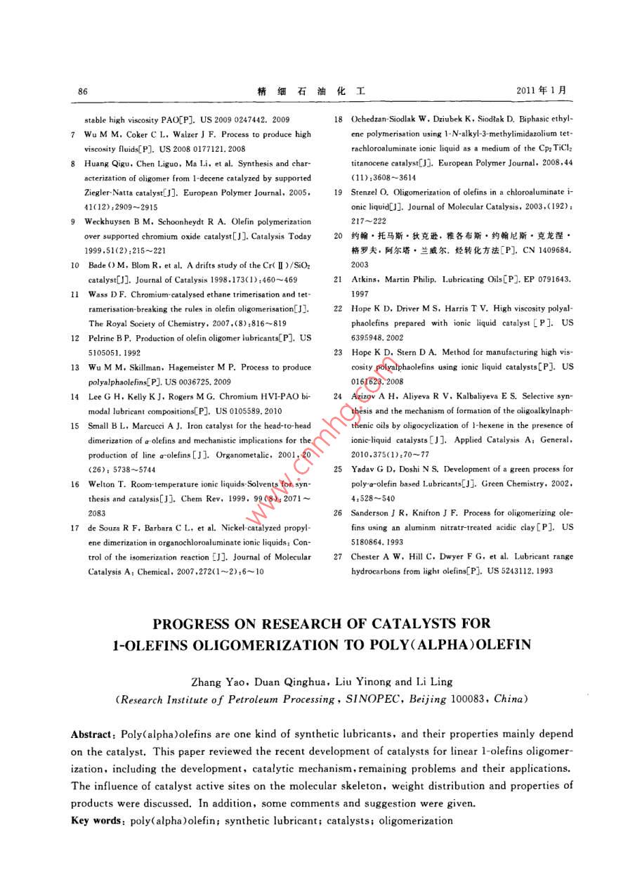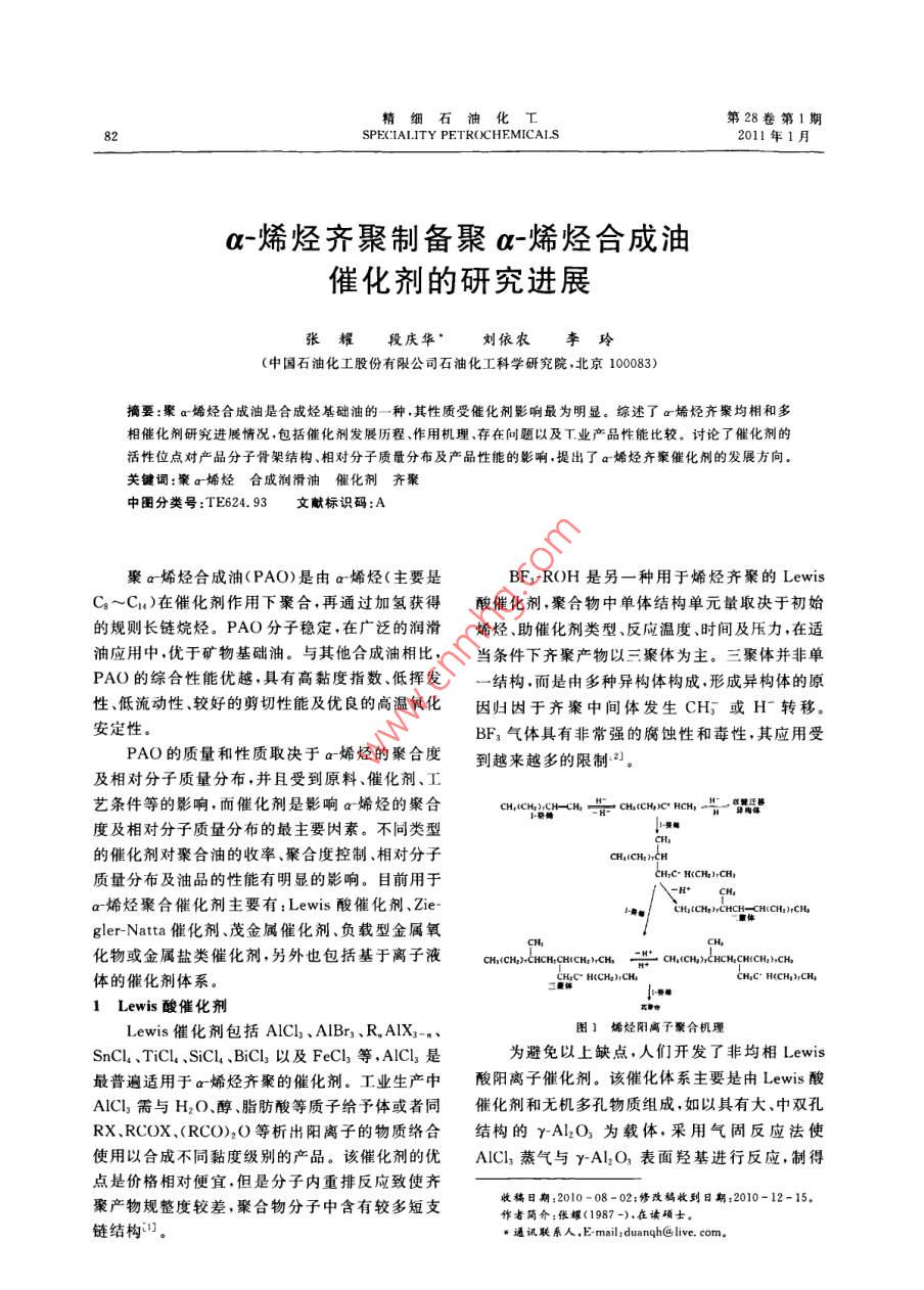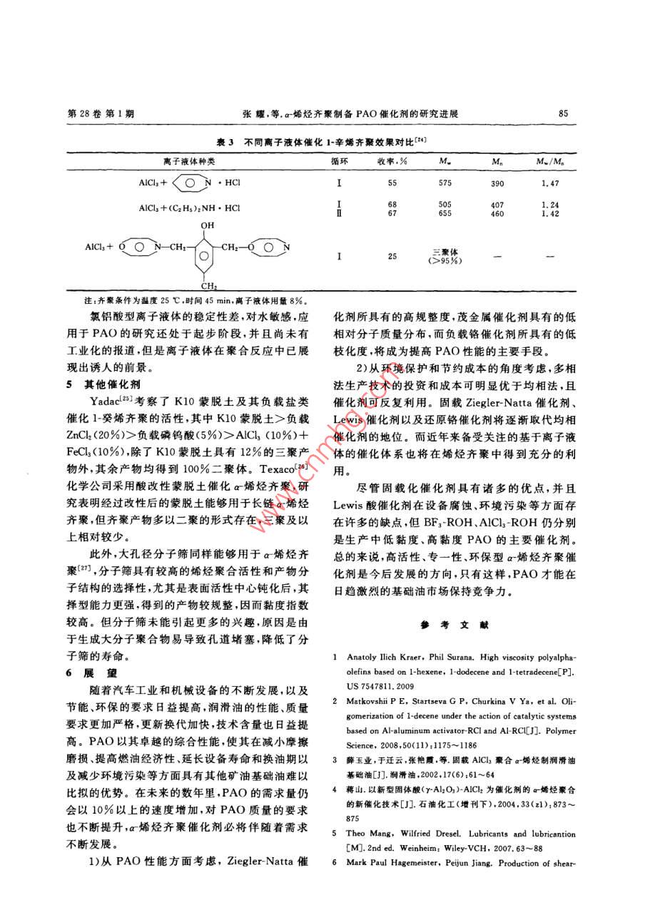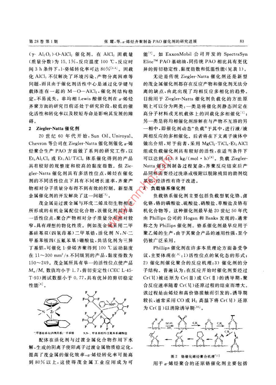 α-烯烃齐聚制备聚α-烯烃合成油催化剂的研究进展
