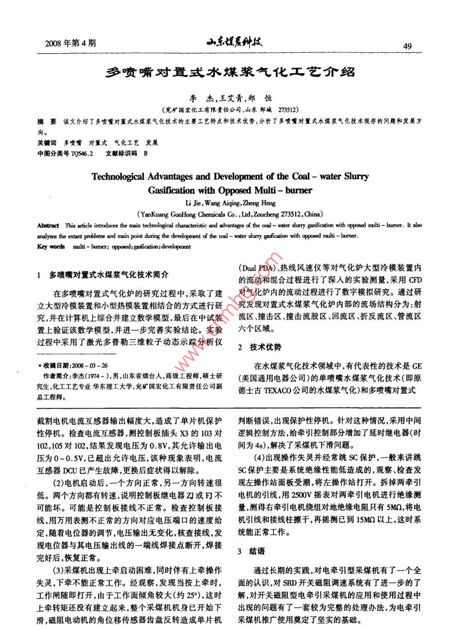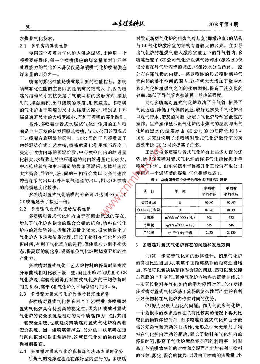 四喷嘴水煤浆气化炉工业应用情况简介 2020-03-23