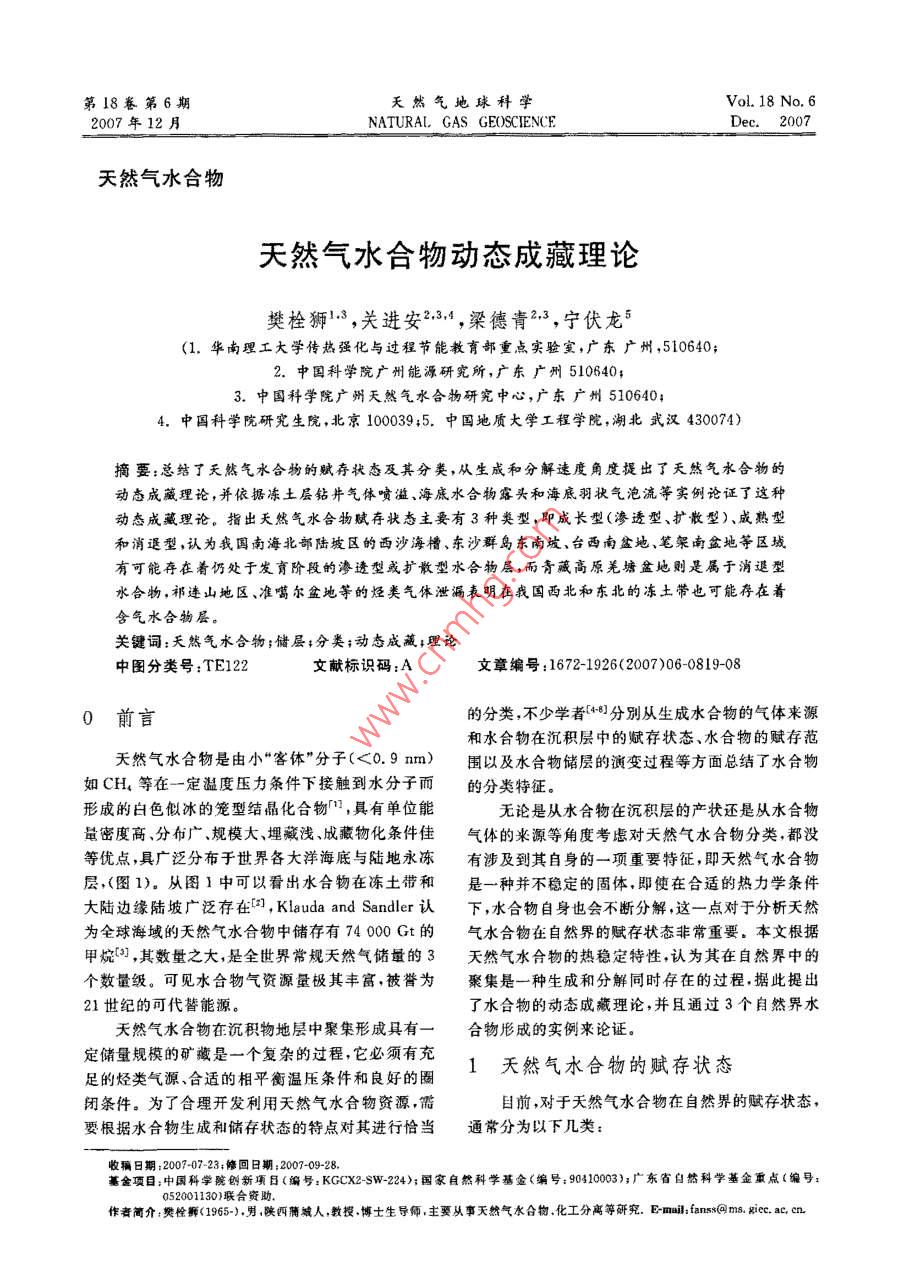 - 论文作者:樊栓狮,关进安,梁德青,宁伏龙