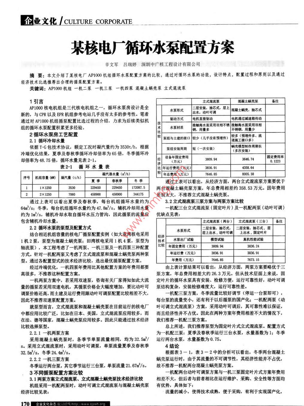 某核电厂循环水泵配置方案