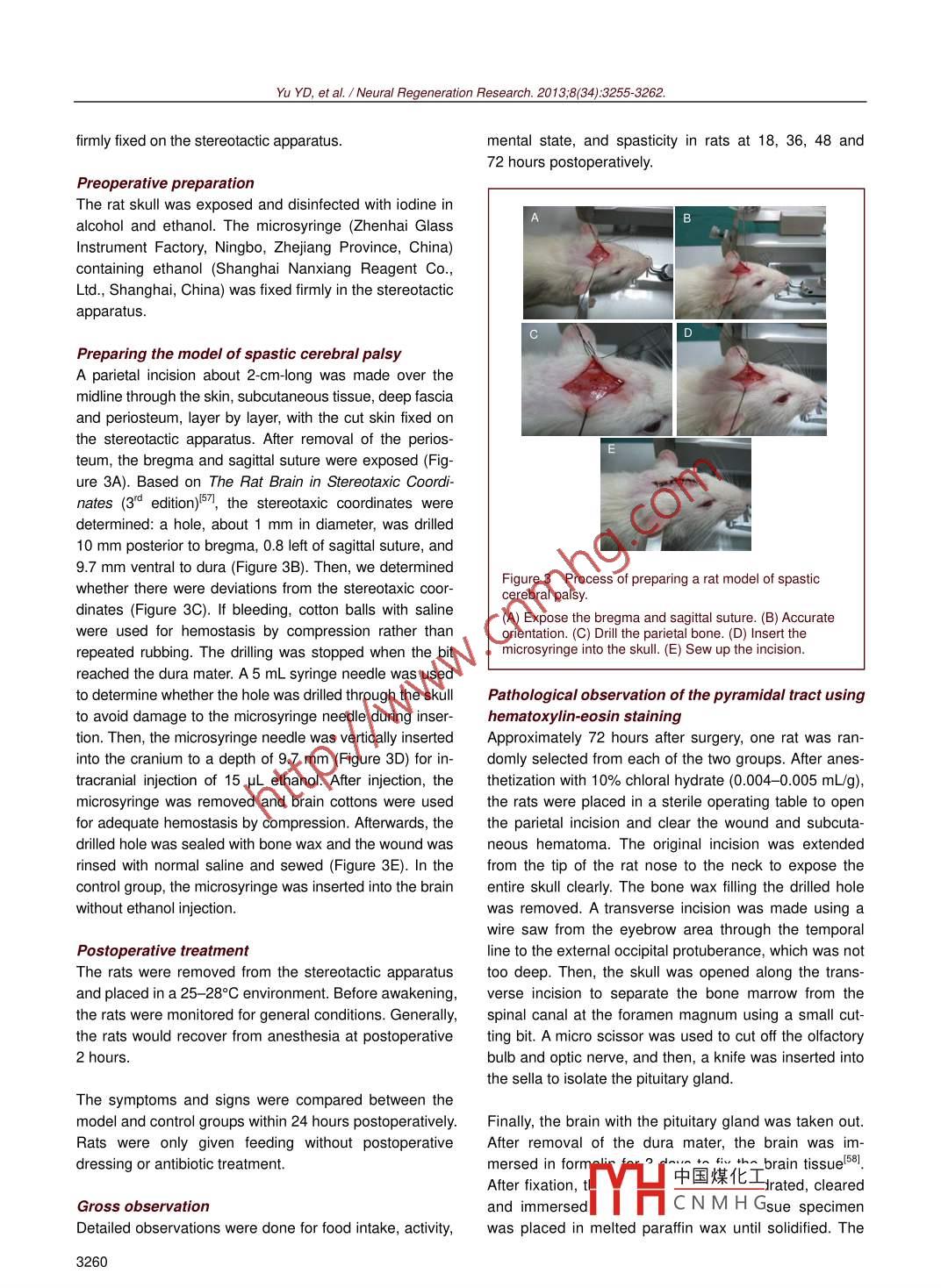 Establishing a rat model of spastic cerebral palsy by targeted ethanol injection