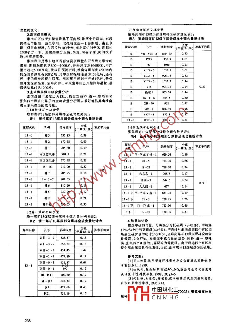 淮南煤田13煤层煤中硫含量分析