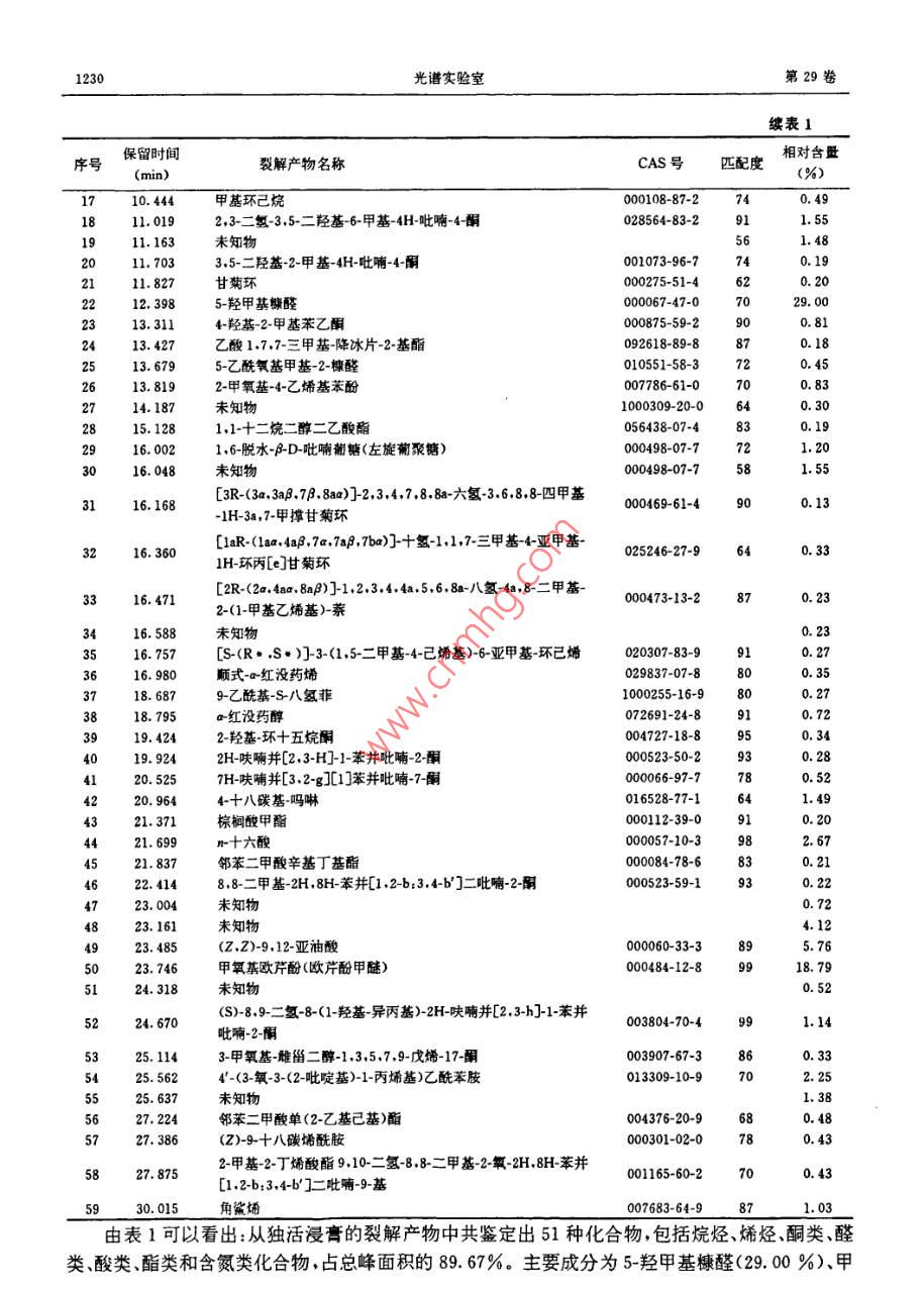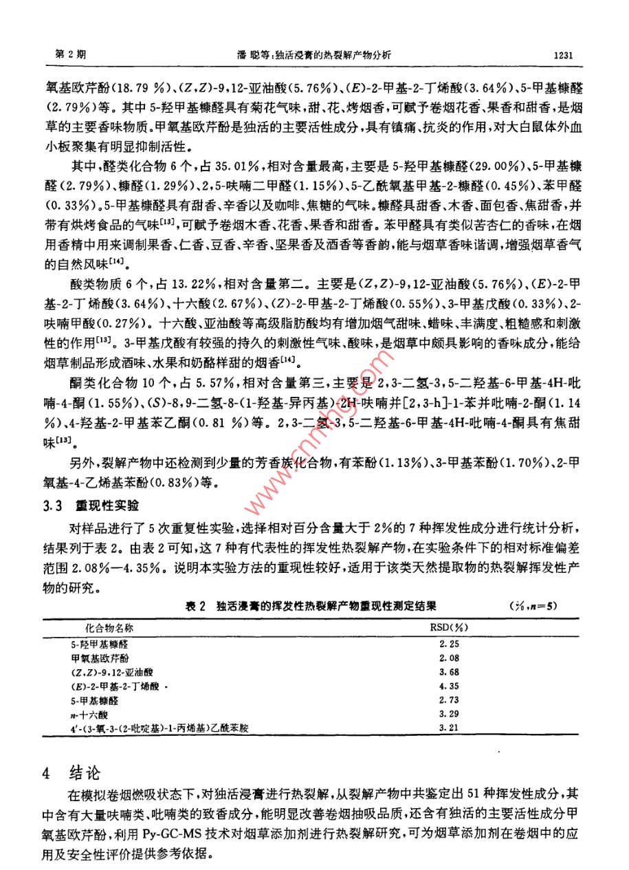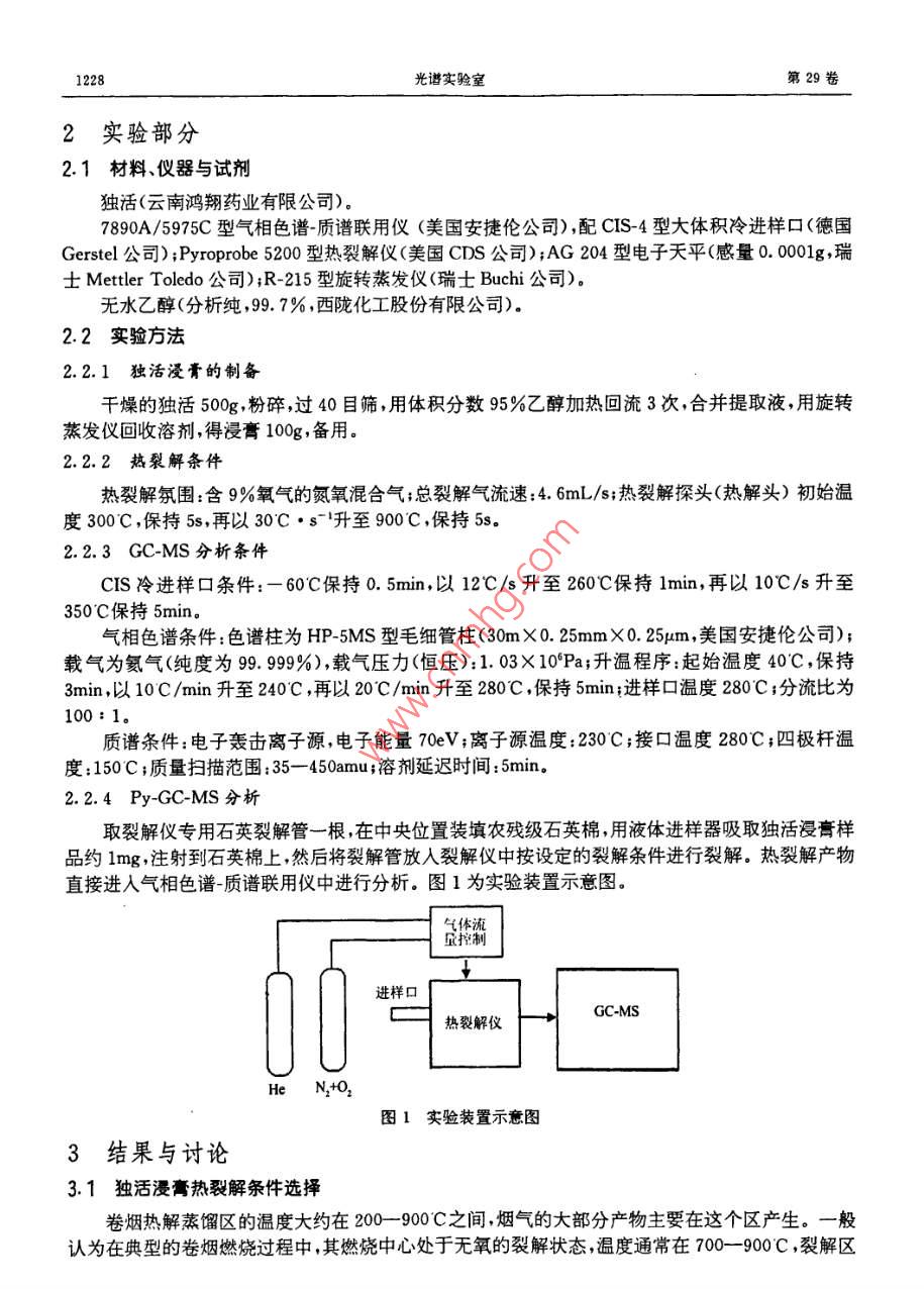 独活浸膏的热裂解产物分析