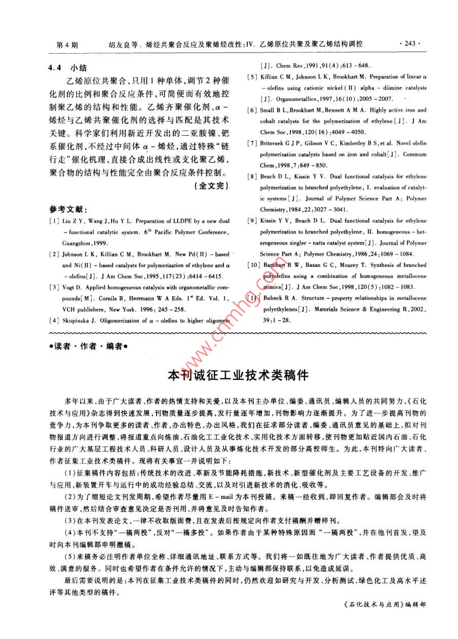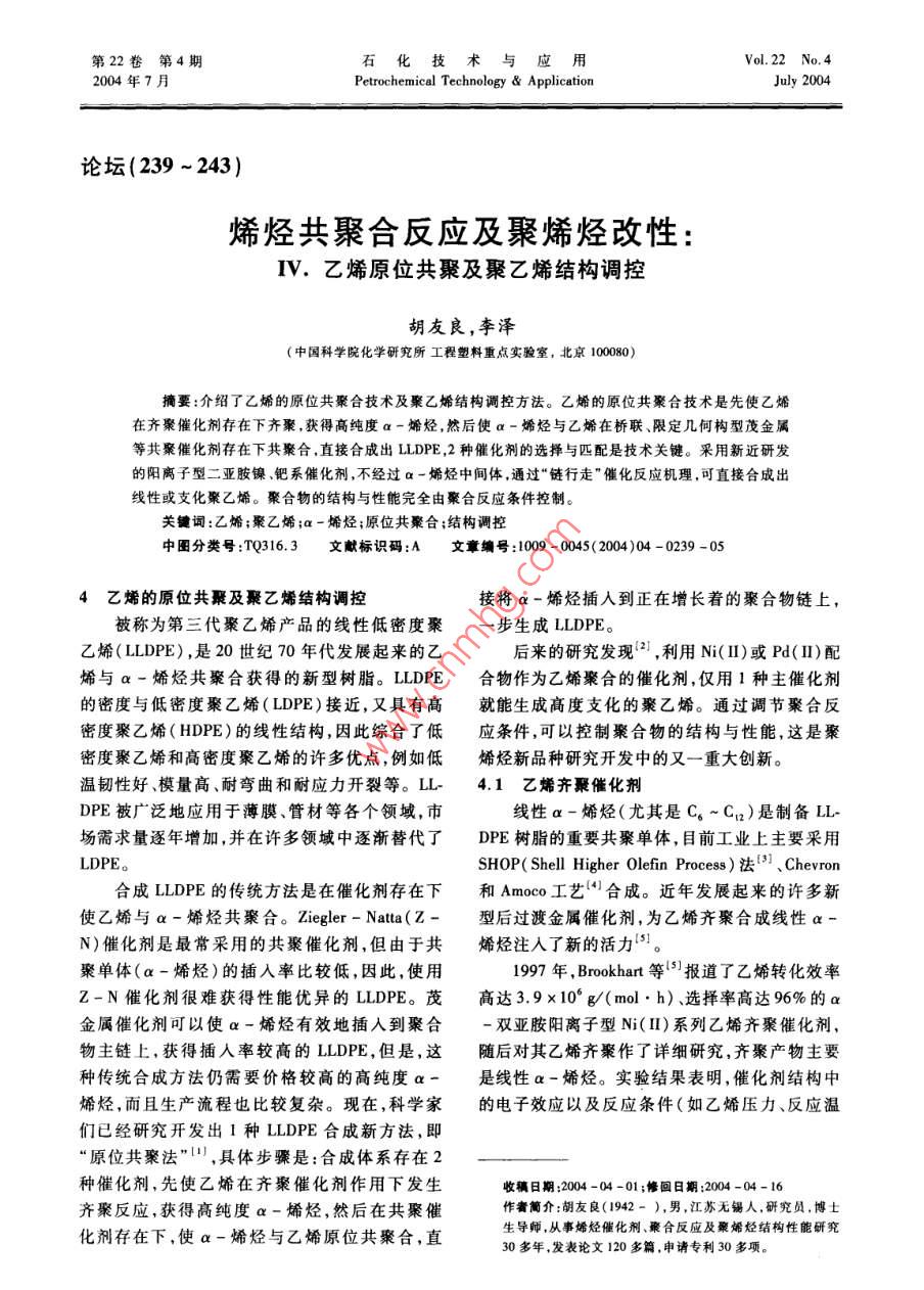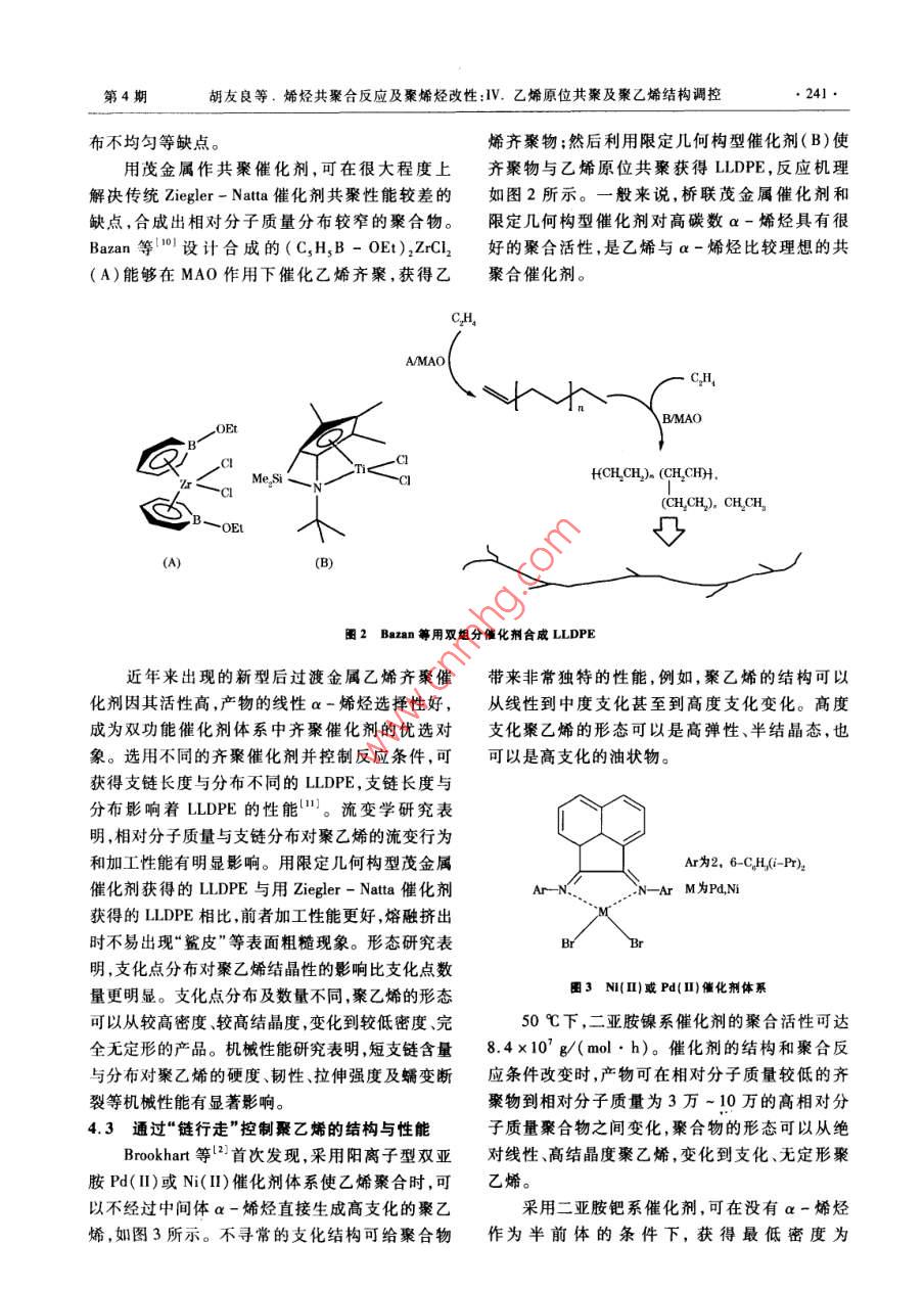 烯烃共聚合反应及聚烯烃改性:Ⅳ.乙烯原位共聚及聚乙烯结构调控