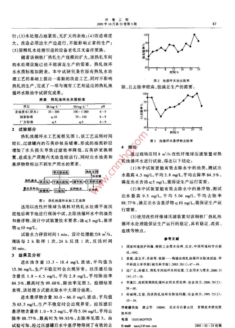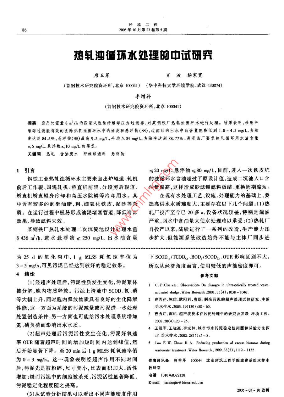 热轧浊循环水处理的中试研究