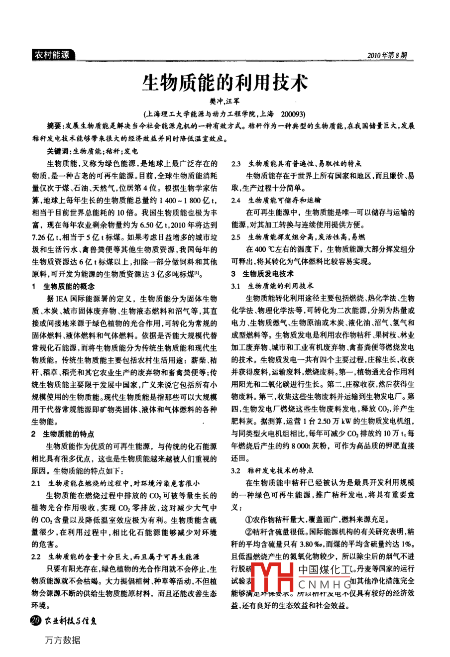 生物质能的利用技术