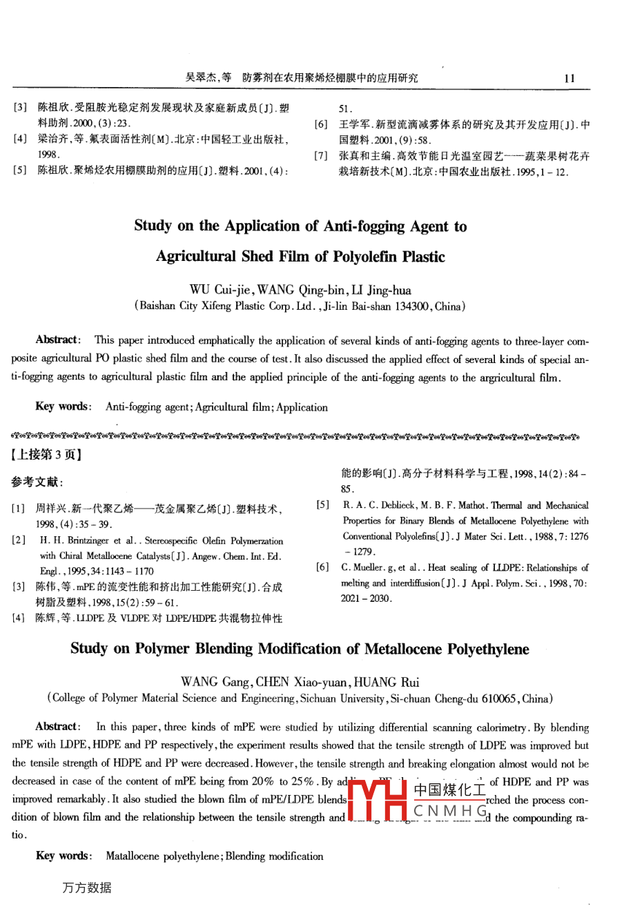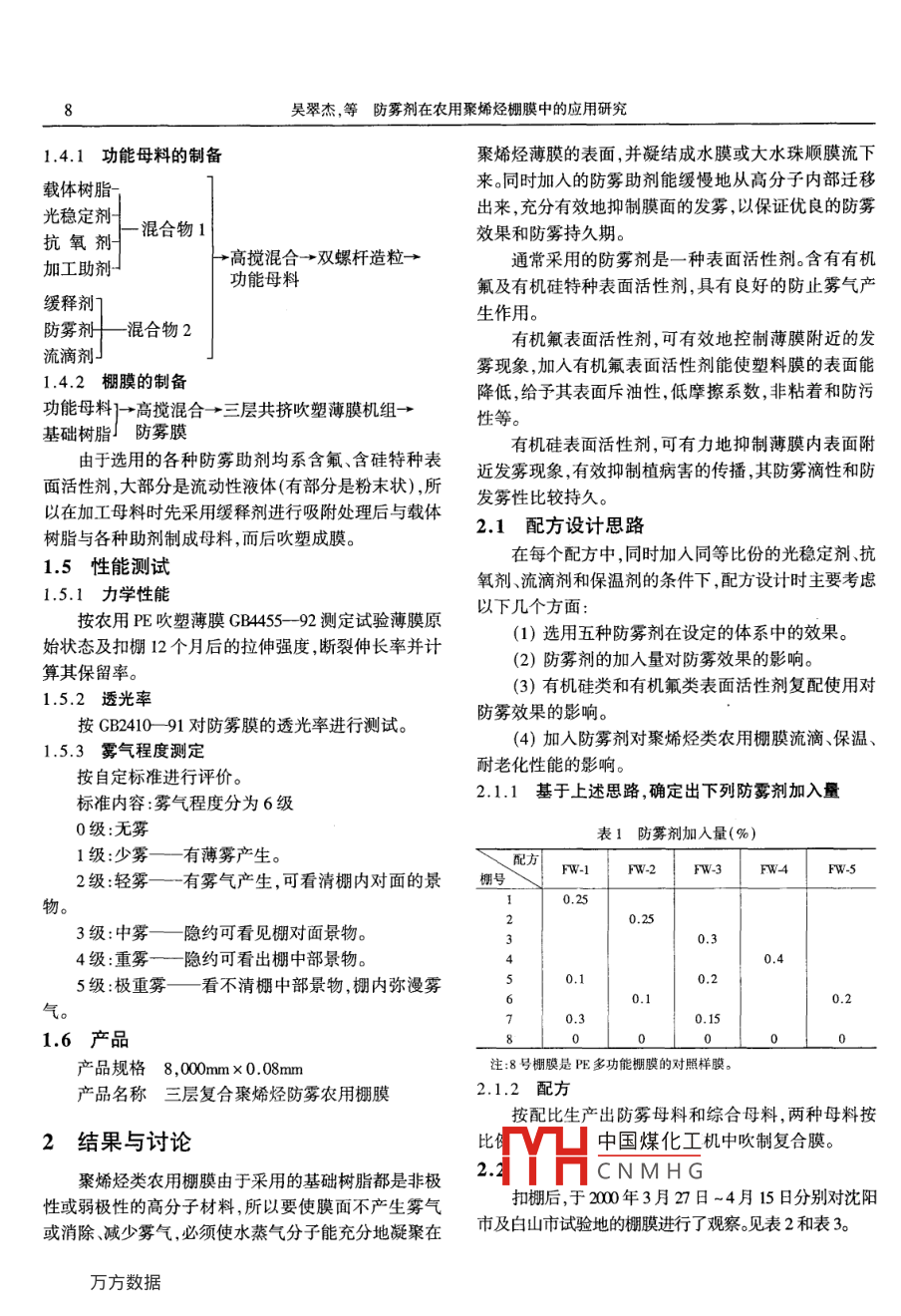 防雾剂在农用聚烯烃棚膜中的应用研究