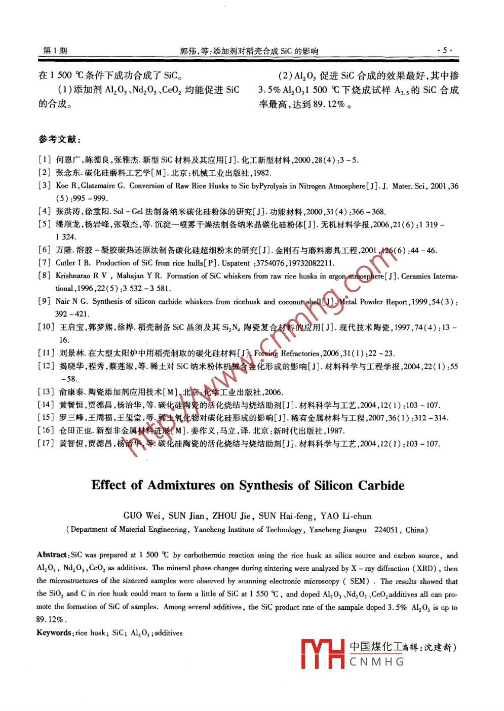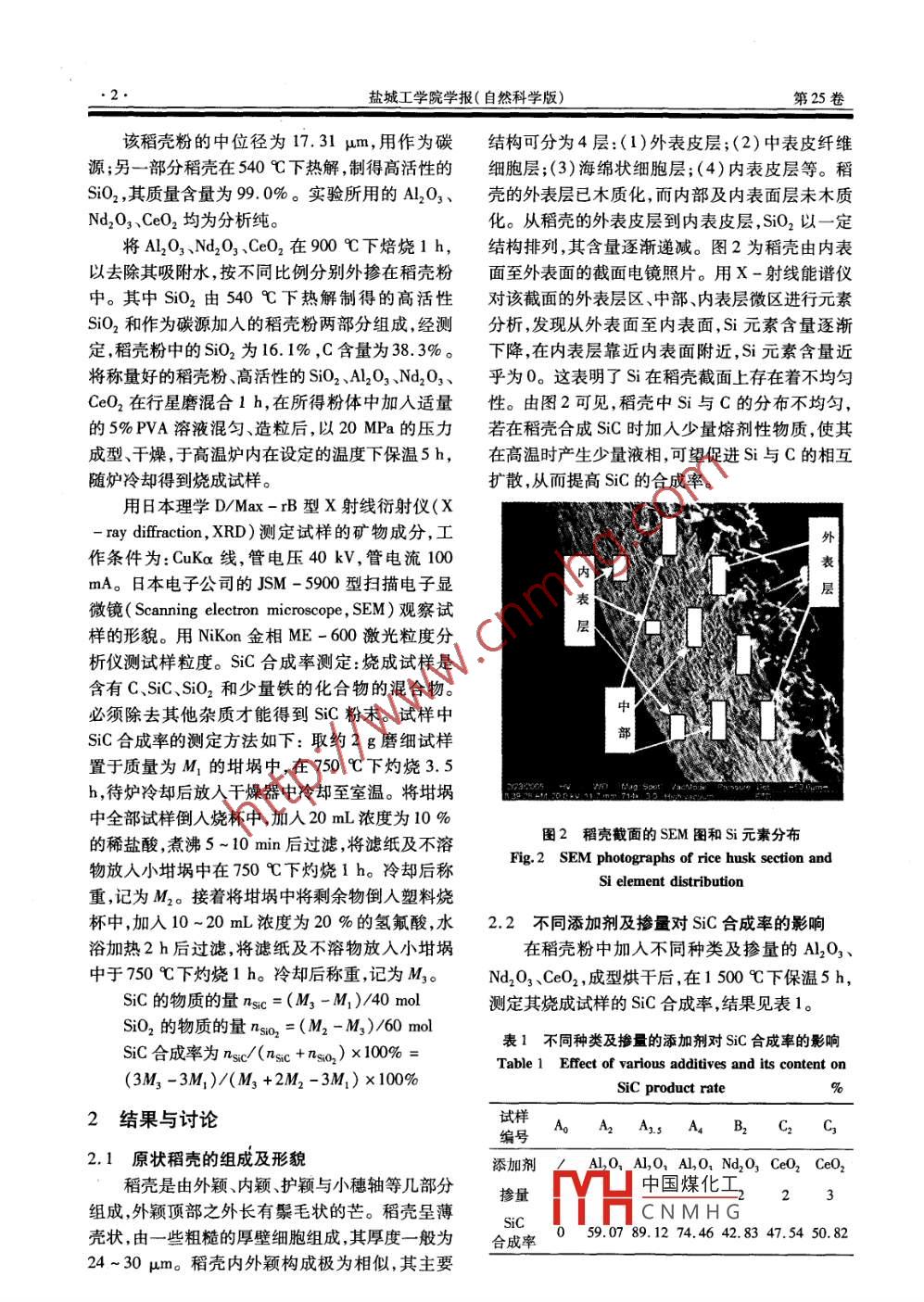 添加剂对稻壳合成SiC的影响