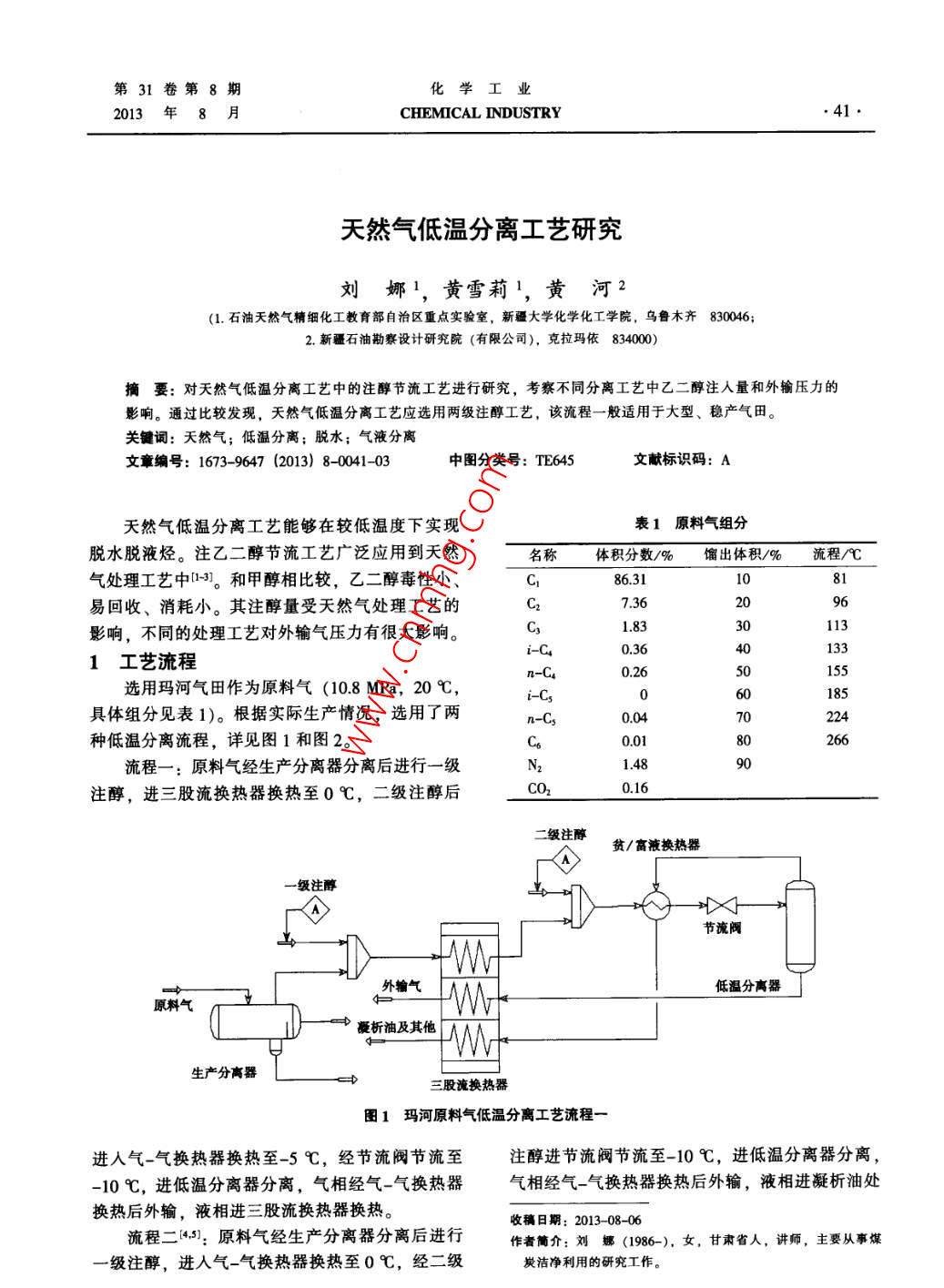 天然气低温分离工艺研究