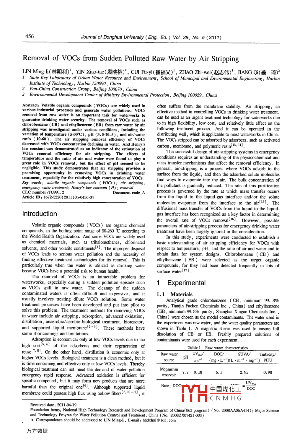Removal of VOCs from Sudden Polluted Raw Water by Air Stripping