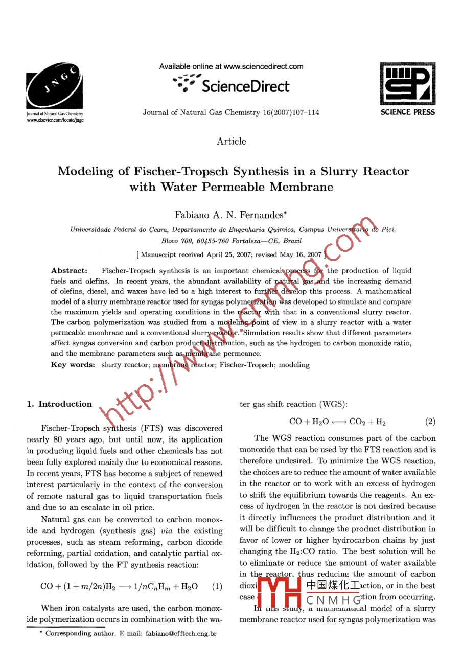 Modeling of Fischer-Tropsch Synthesis in a Slurry Reactor with Water Permeable Membrane