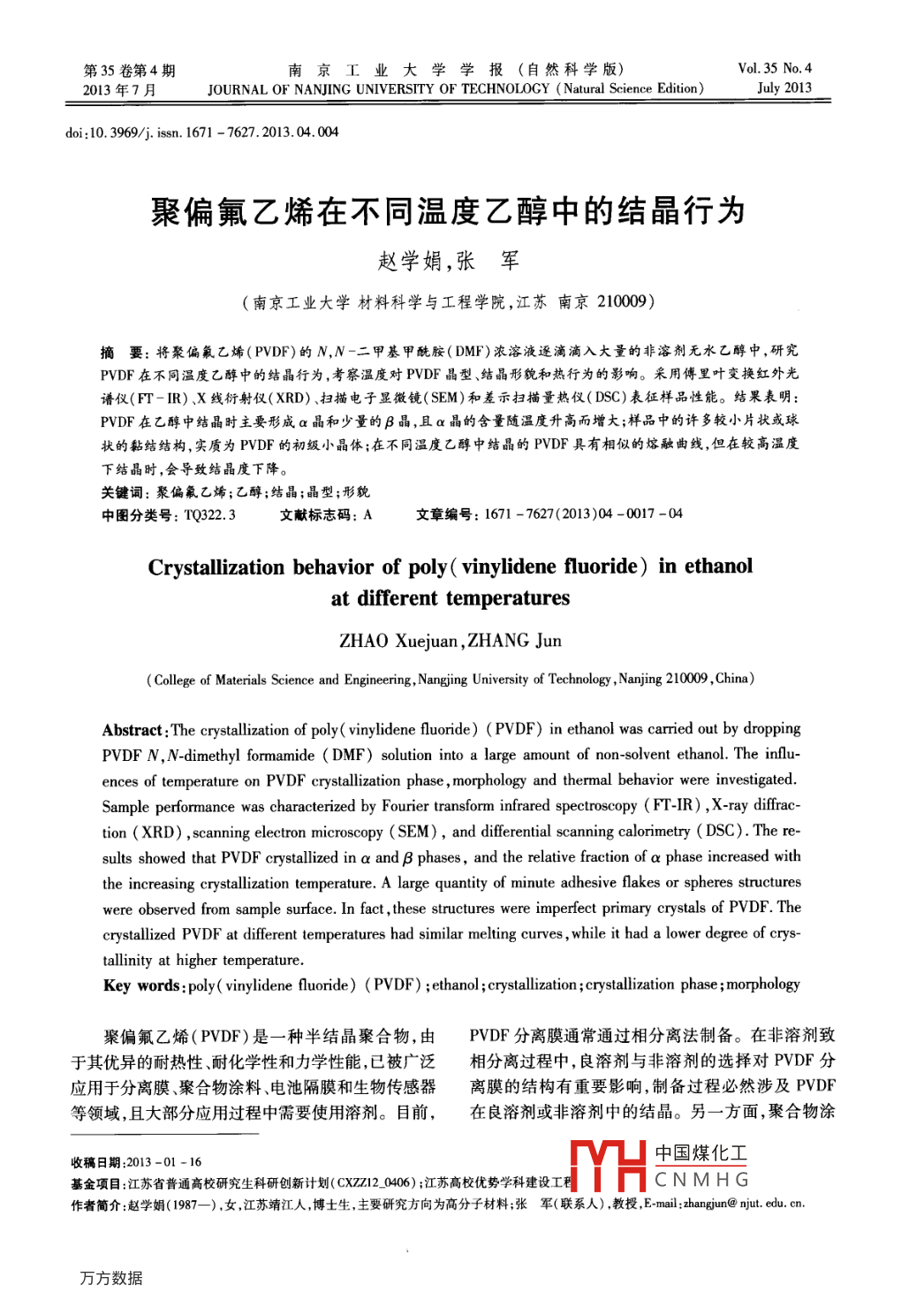 聚偏氟乙烯在不同温度乙醇中的结晶行为