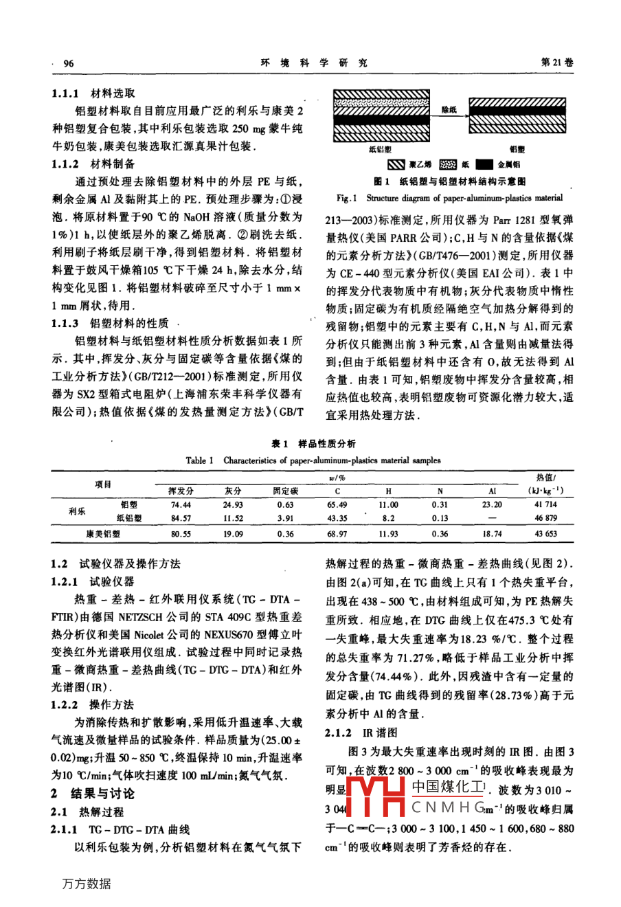 铝塑包装废物的热解特性研究