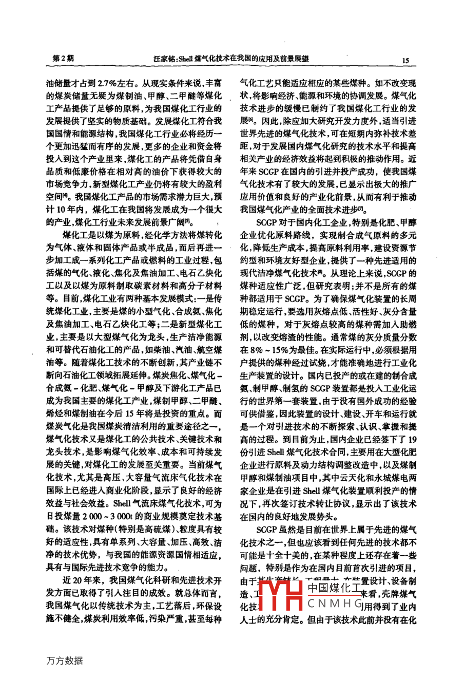 Shell煤气化技术在我国的应用及前景展望
