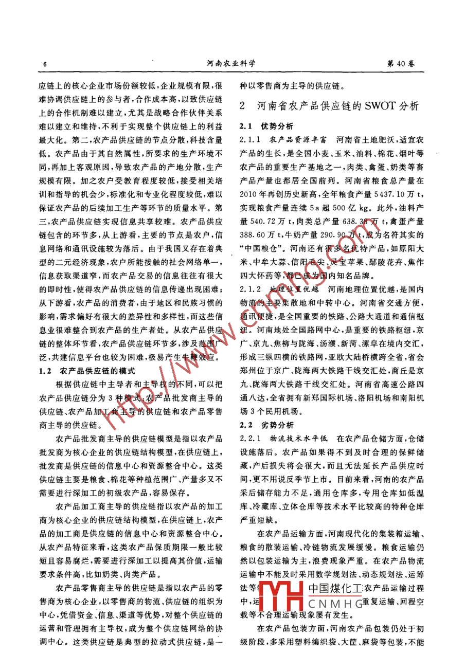 河南省农产品供应链SWOT分析