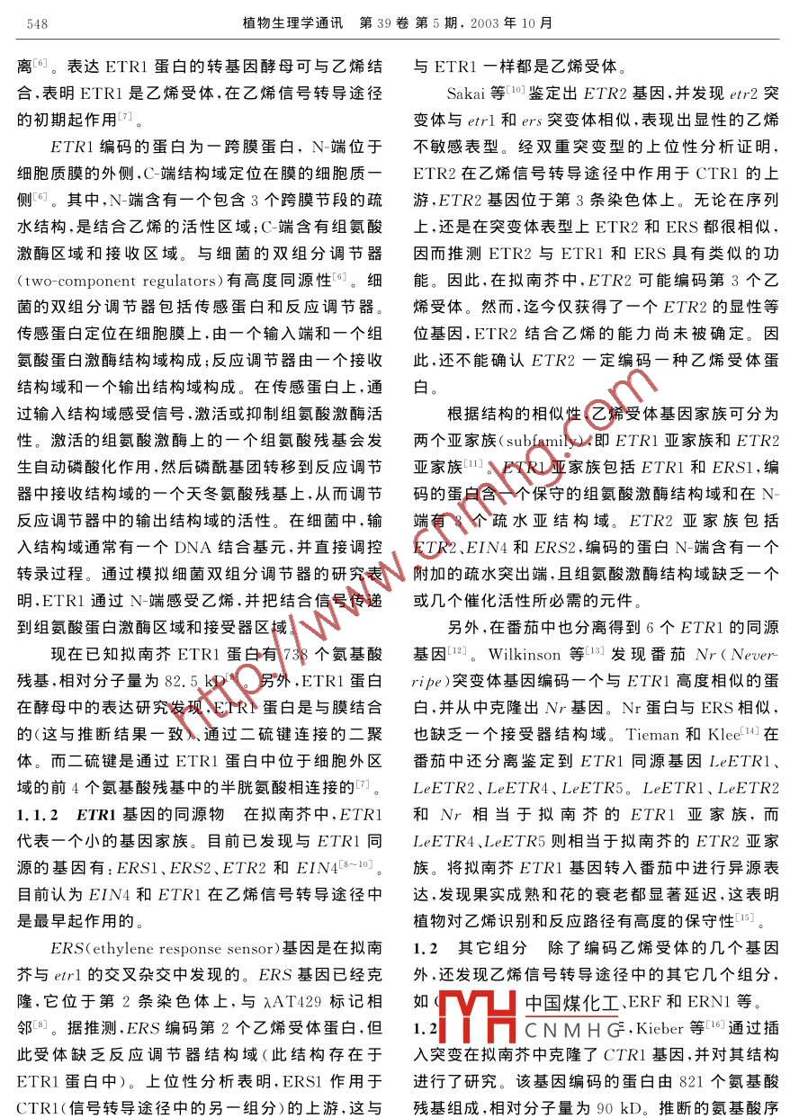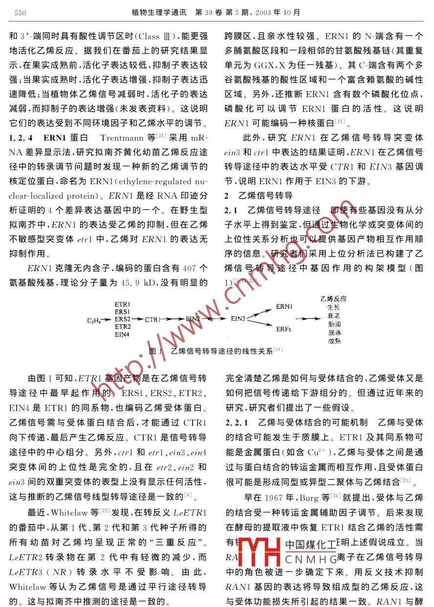 乙烯信号的接受与转导
