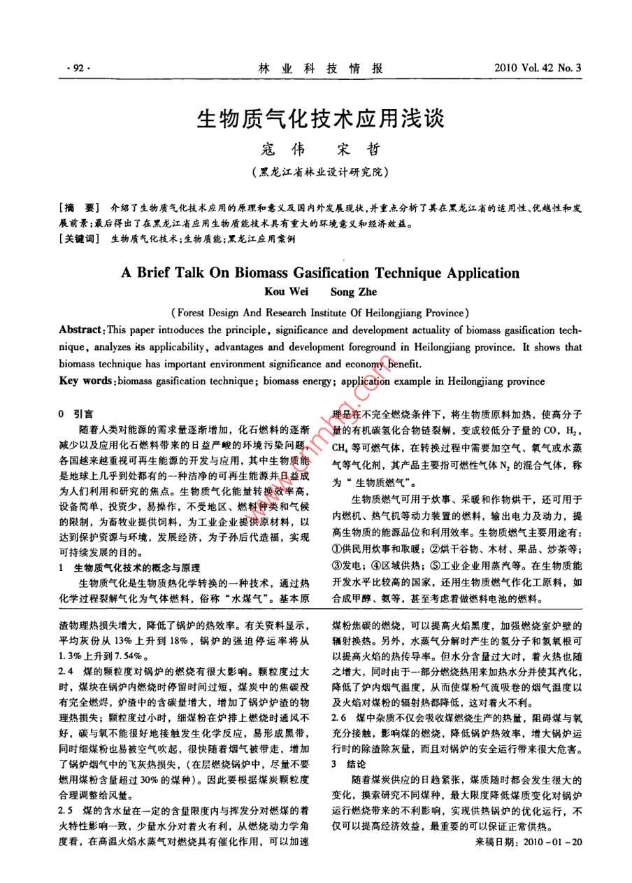 生物质气化技术应用浅谈