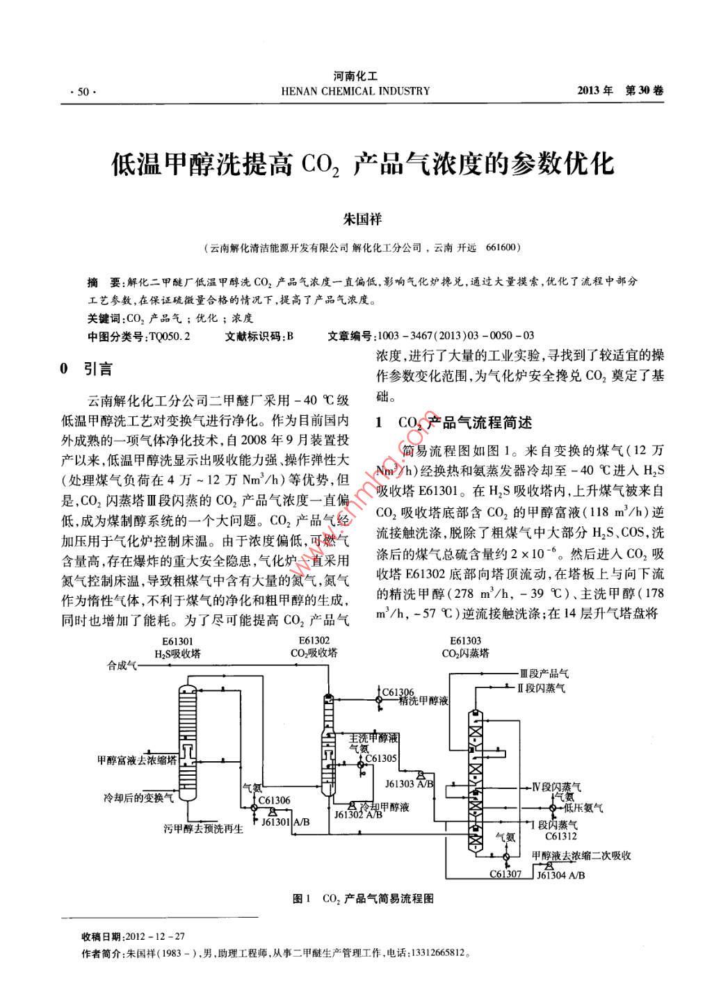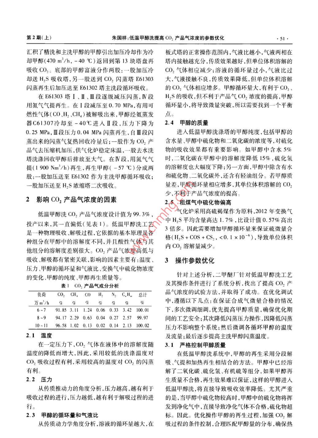 低温甲醇洗提高CO2产品气浓度的参数优化