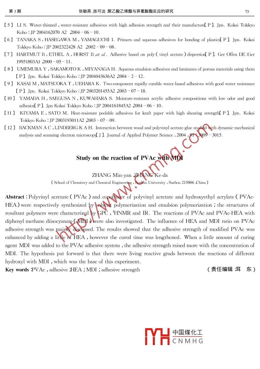 聚乙酸乙烯酯与异氰酸酯反应的研究