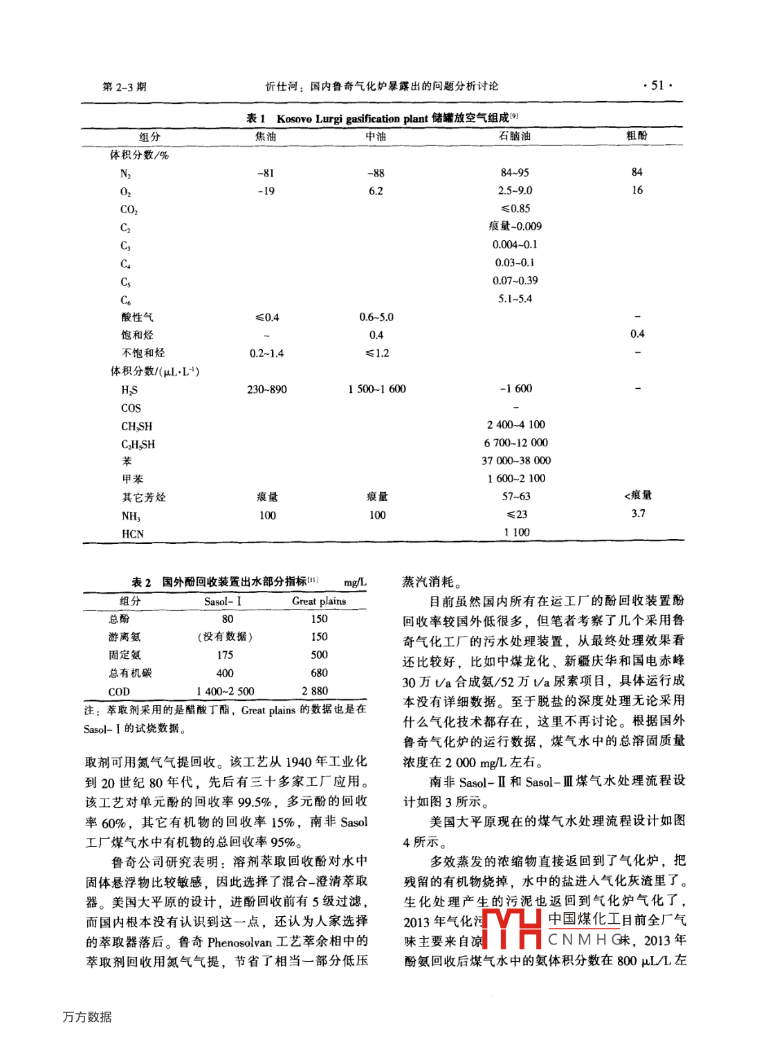 国内鲁奇气化炉暴露出的问题分析讨论