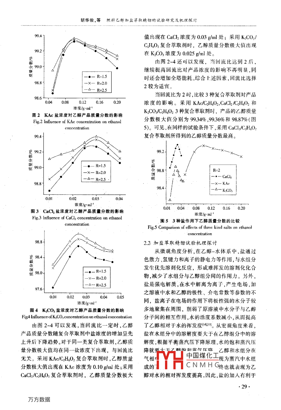 燃料乙醇加盐萃取精馏的试验研究及机理探讨