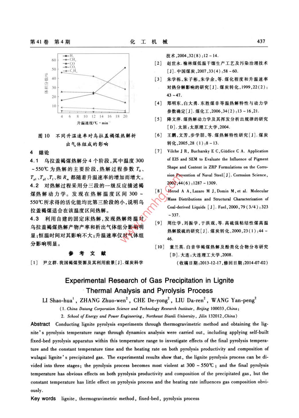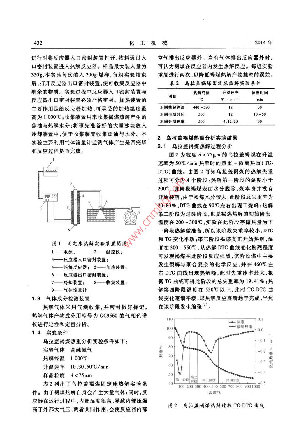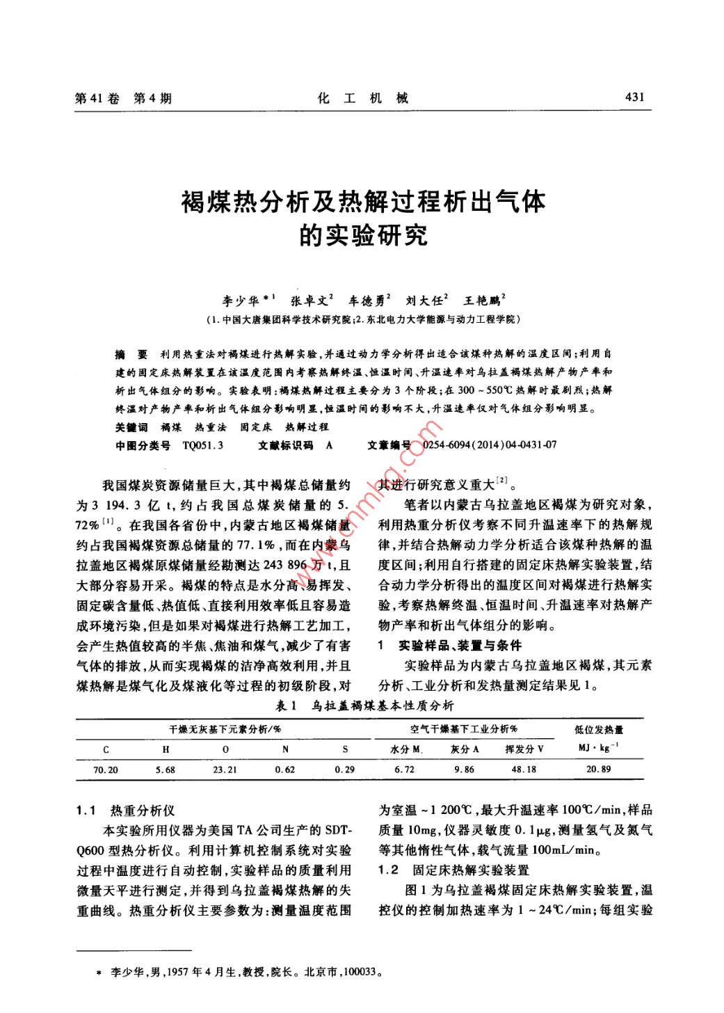 褐煤热分析及热解过程析出气体的实验研究