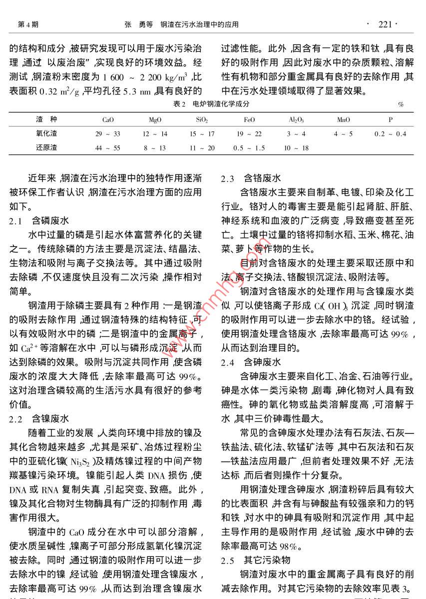 钢渣在污水治理中的应用
