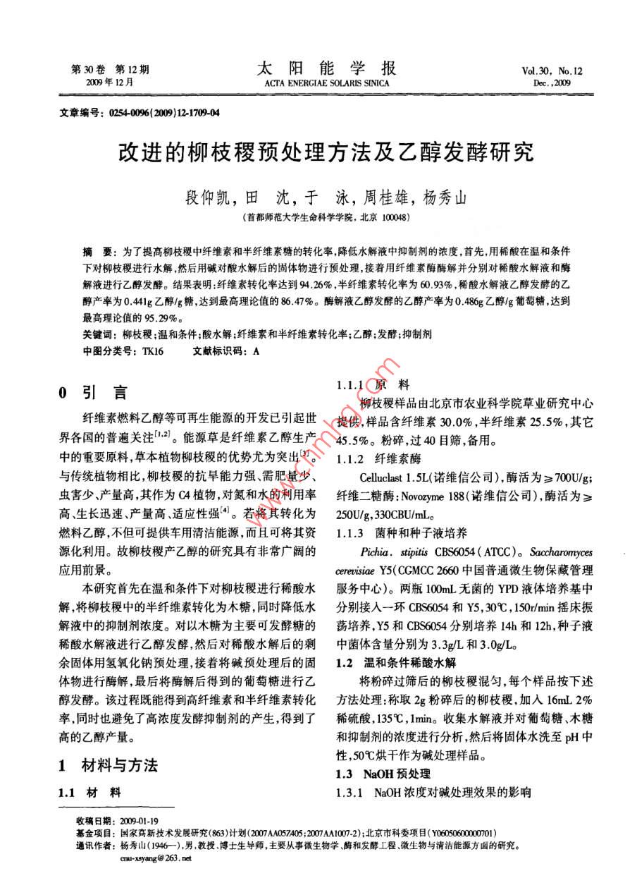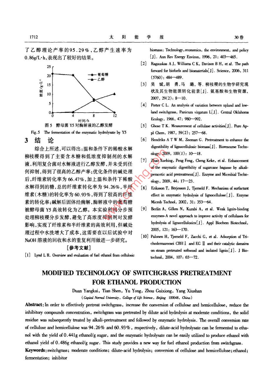 改进的柳枝稷预处理方法及乙醇发酵研究