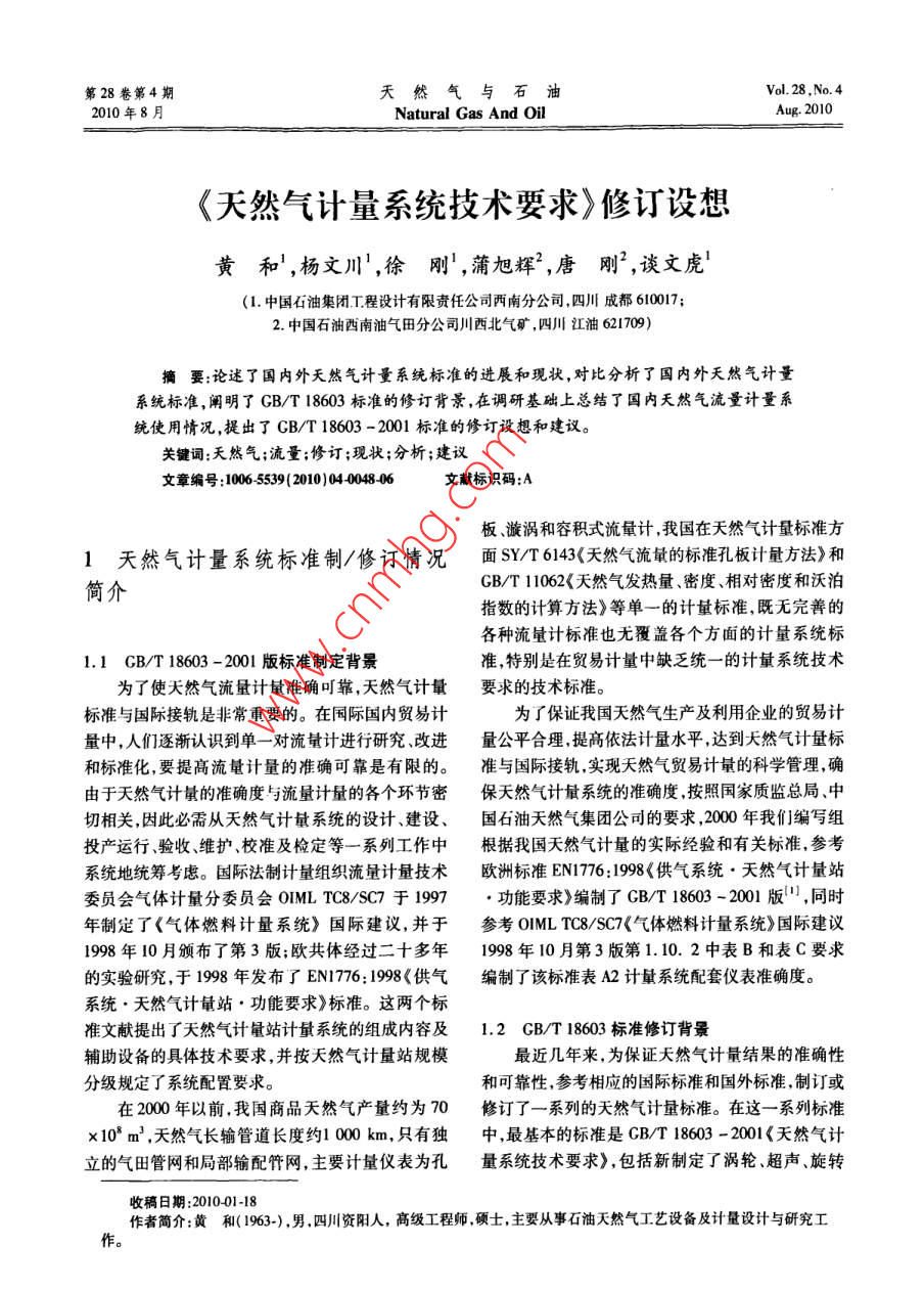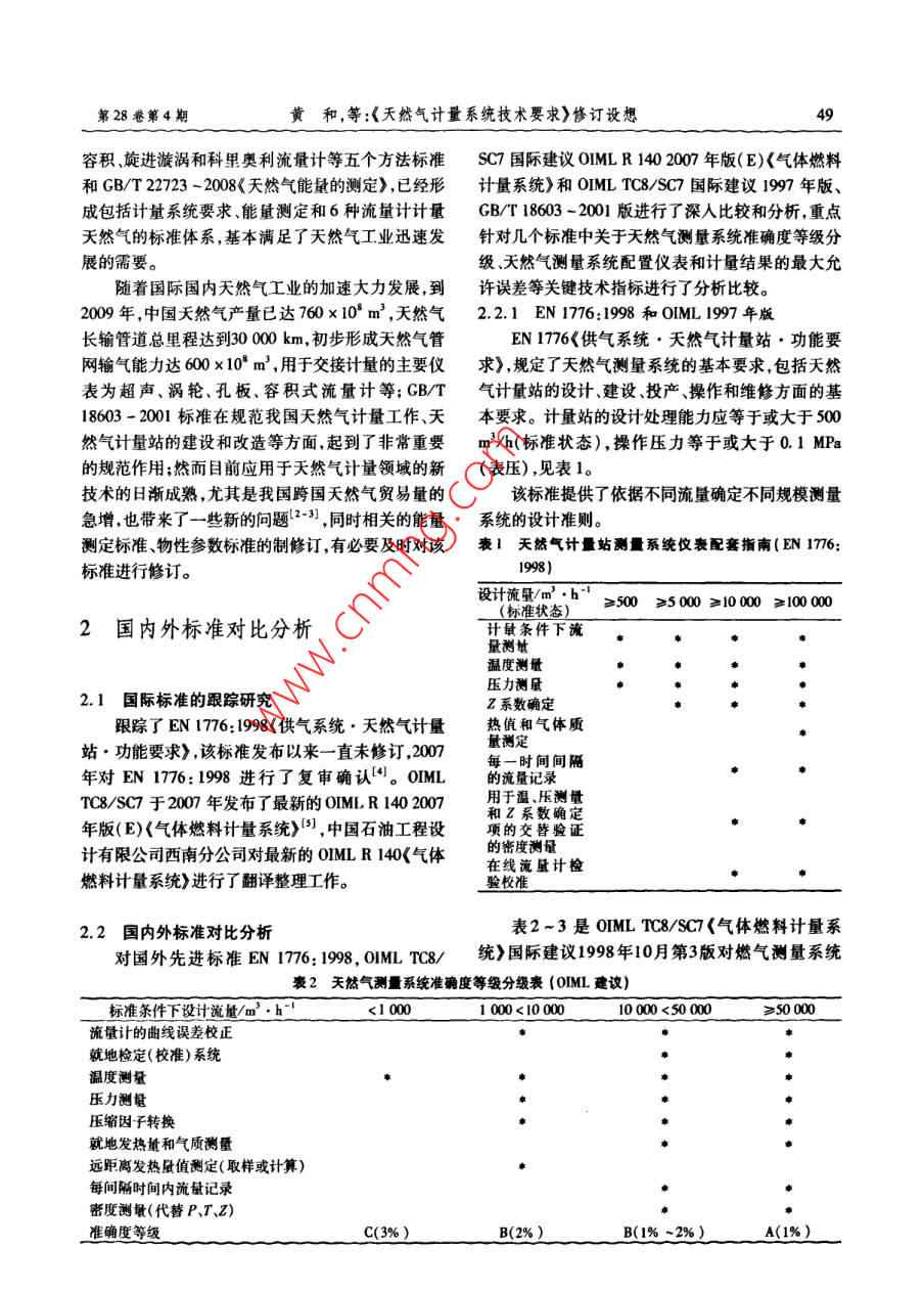 《天然气计量系统技术要求》修订设想