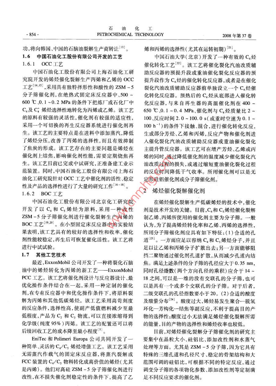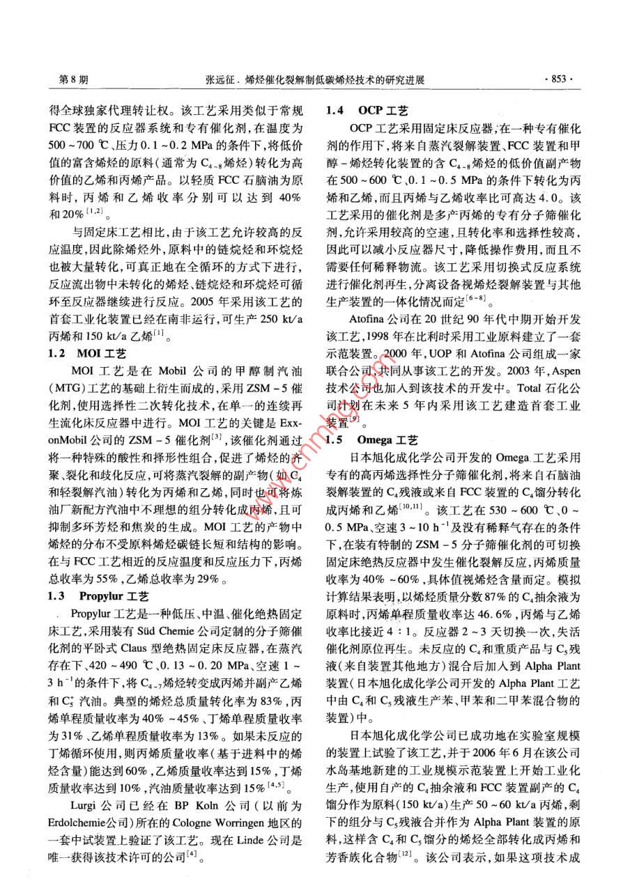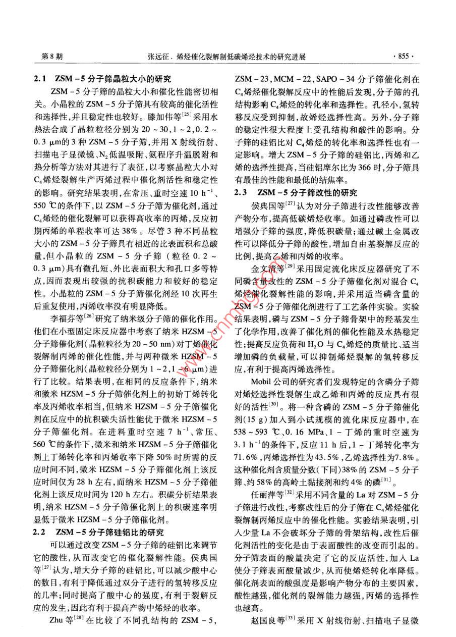 烯烃催化裂解制低碳烯烃技术的研究进展