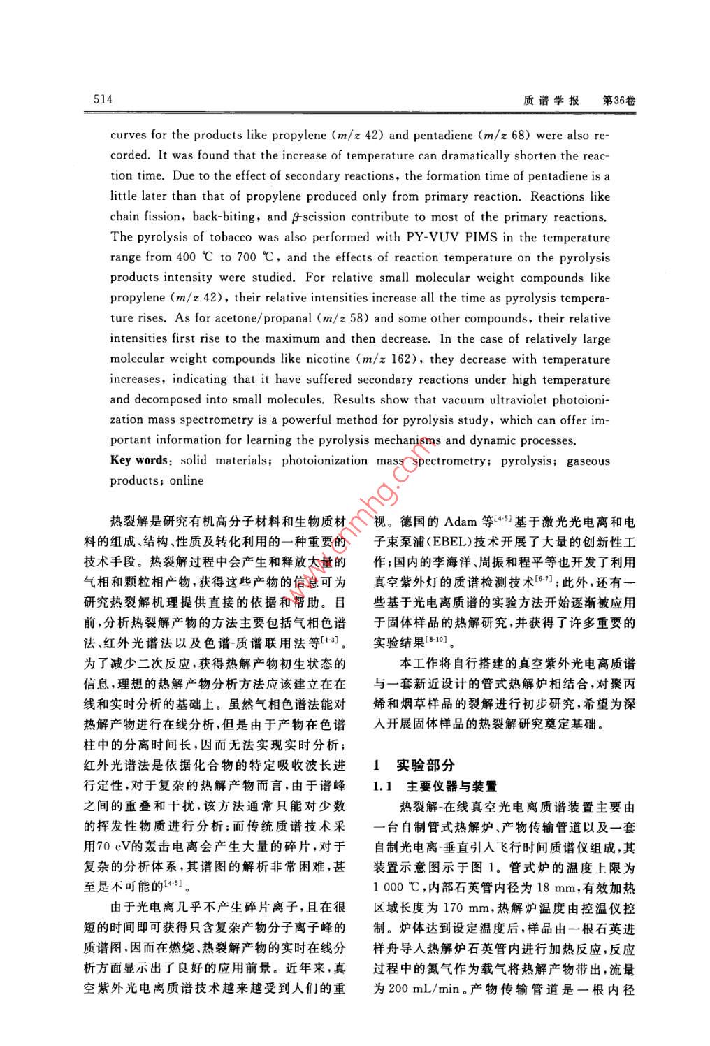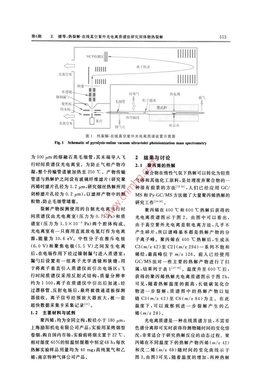 热裂解-在线真空紫外光电离质谱法研究固体物热裂解