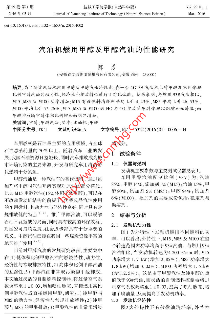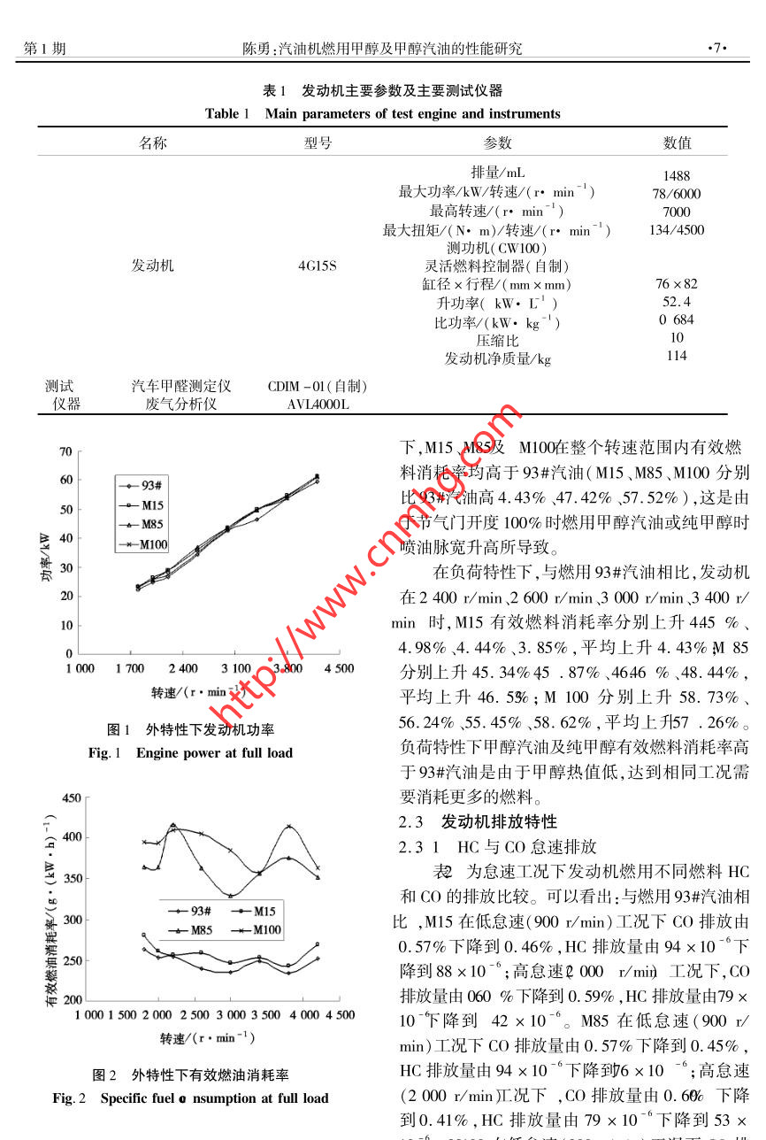 汽油机燃用甲醇及甲醇汽油的性能研究