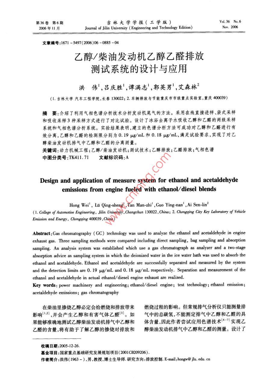乙醇/柴油发动机乙醇乙醛排放测试系统的设计与应用