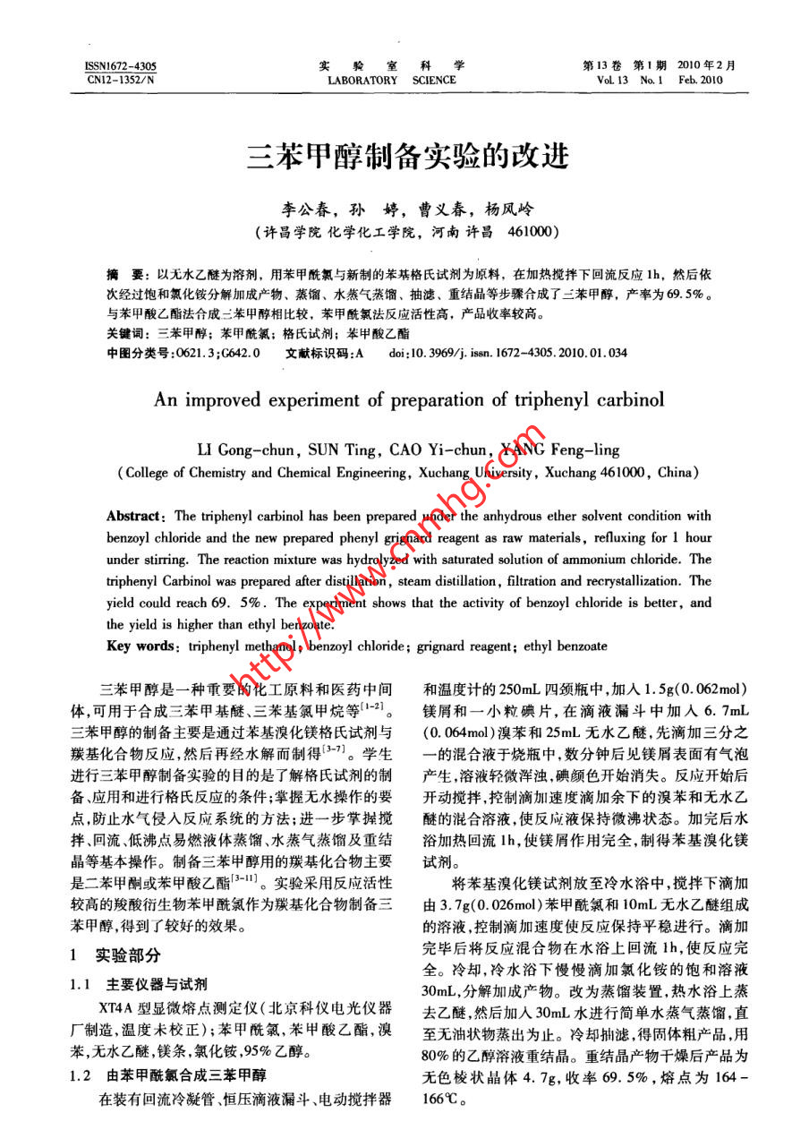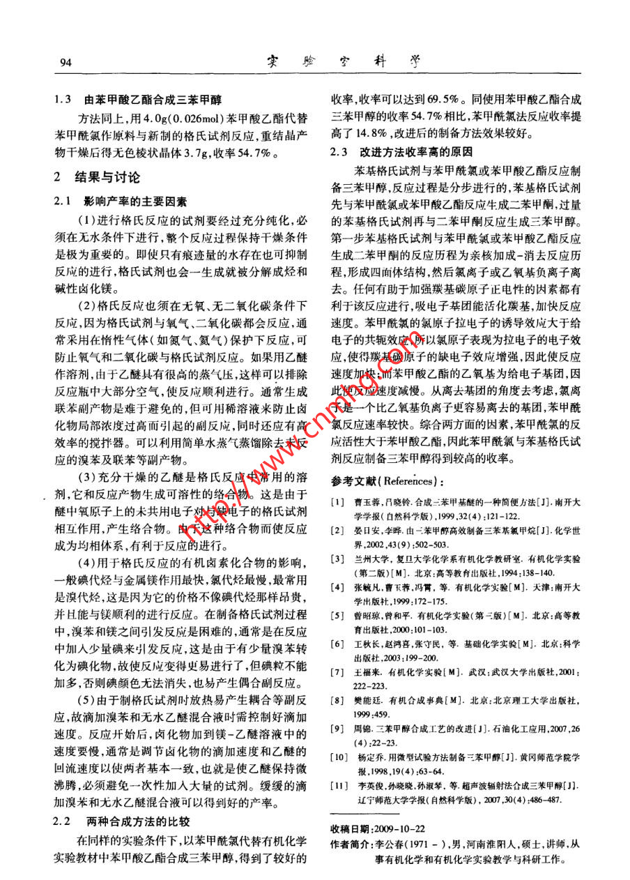 三苯甲醇制备实验的改进
