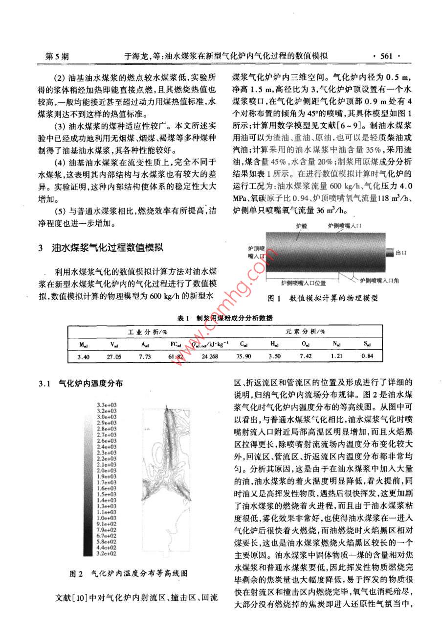 油水煤浆在新型气化炉内气化过程的数值模拟
