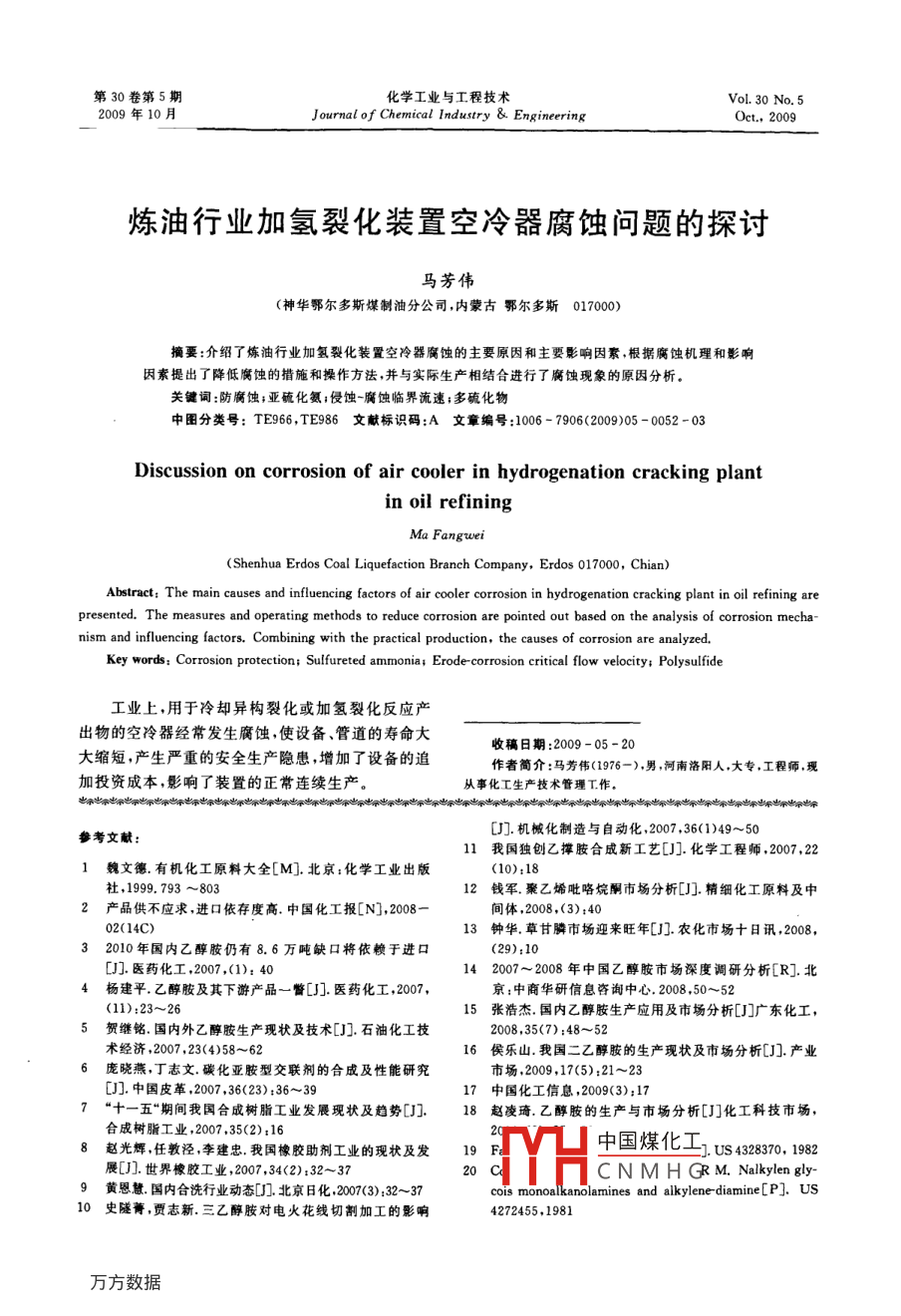 - 期刊名字:化学工业与工程技术