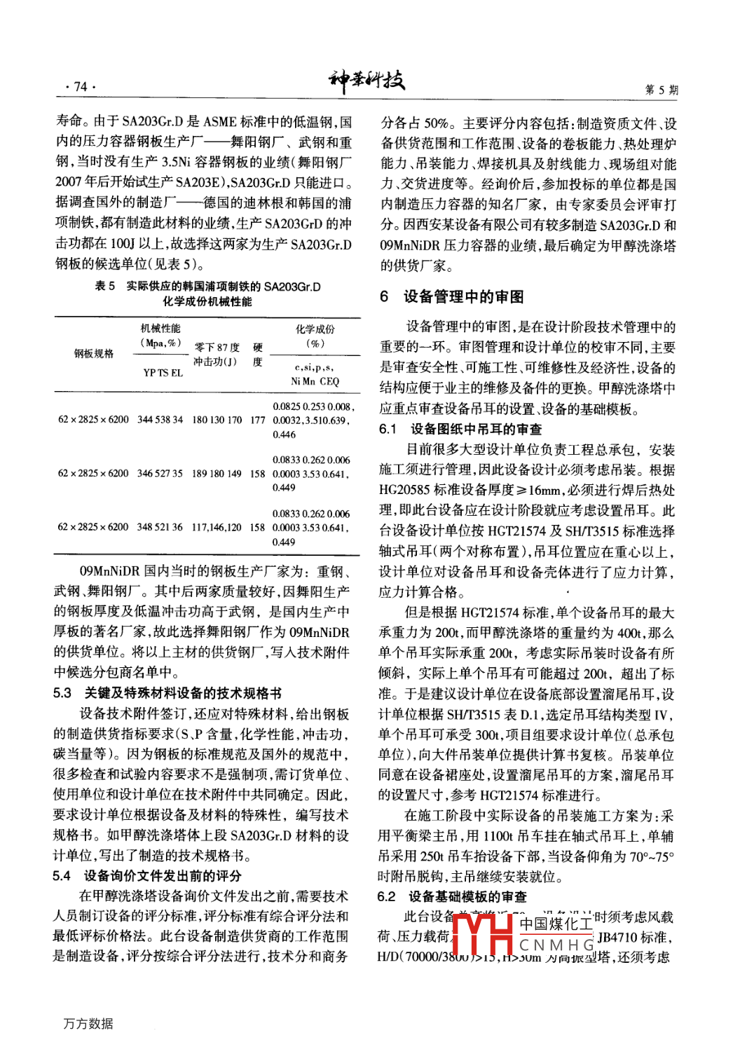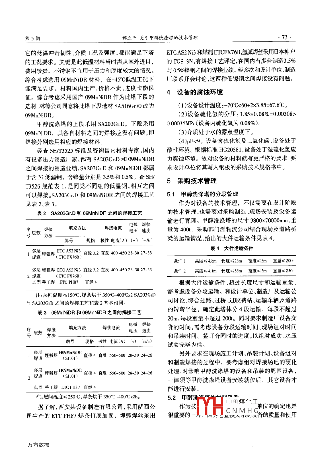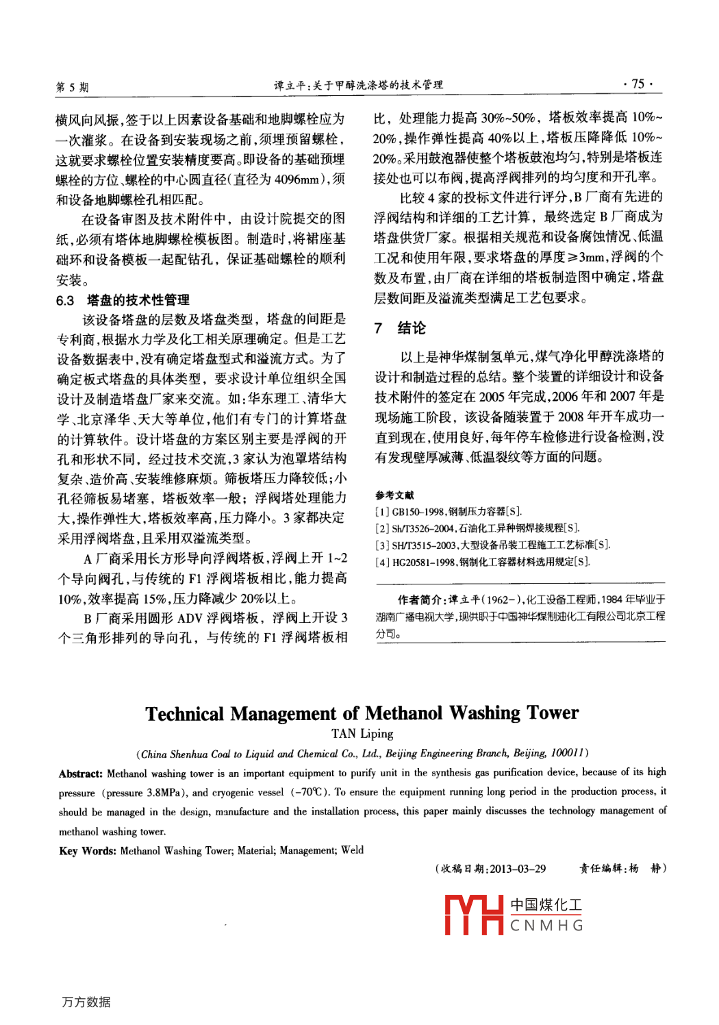 关于甲醇洗涤塔的技术管理