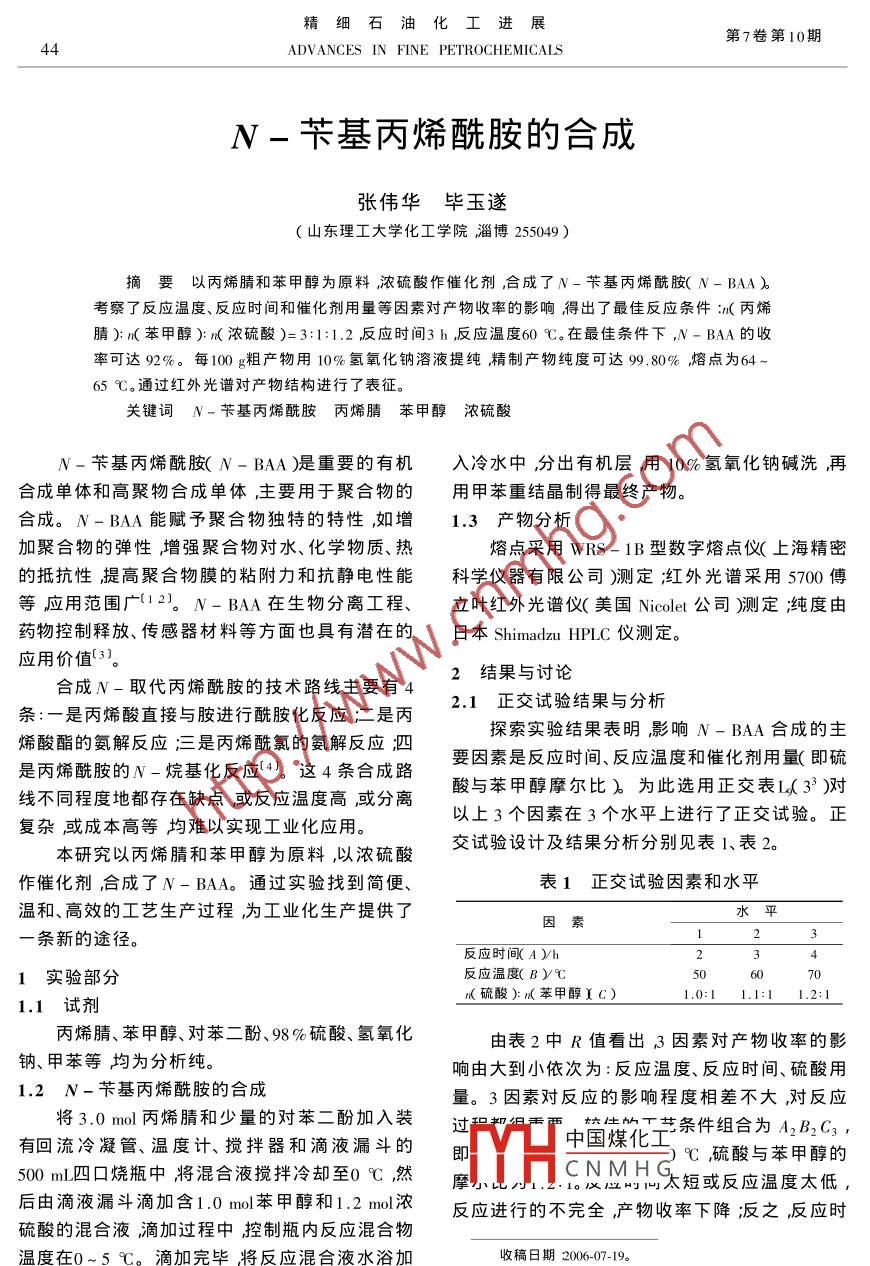 - 作者单位:山东理工大学化工学院