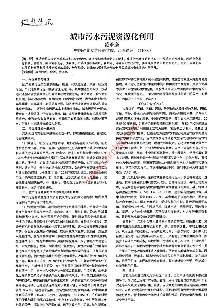 城市污水污泥资源化利用