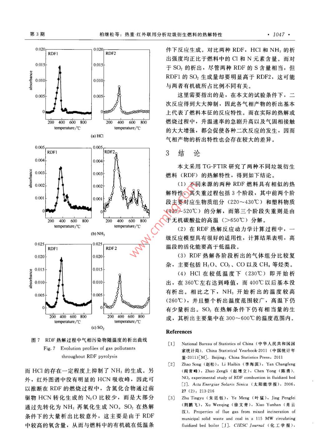 热重-红外联用分析垃圾衍生燃料的热解特性