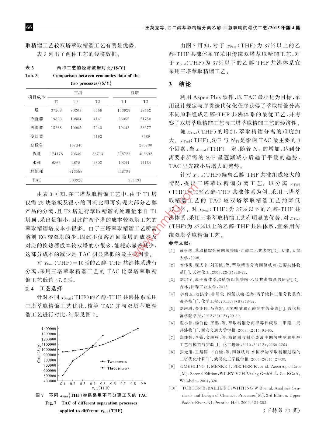 乙二醇萃取精馏分离乙醇-四氢呋喃的最优工艺
