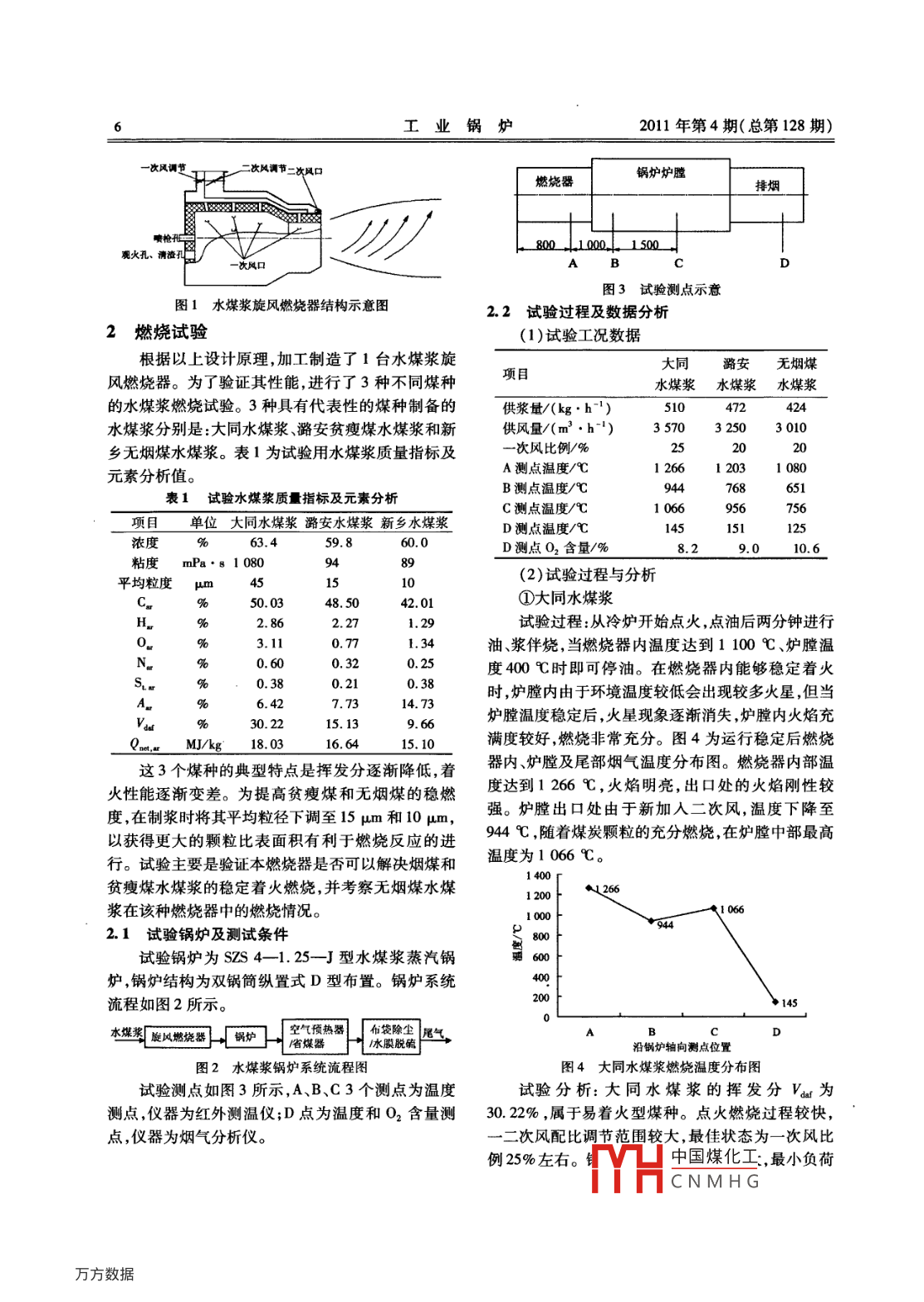 低挥发分水煤浆燃烧器试验研究