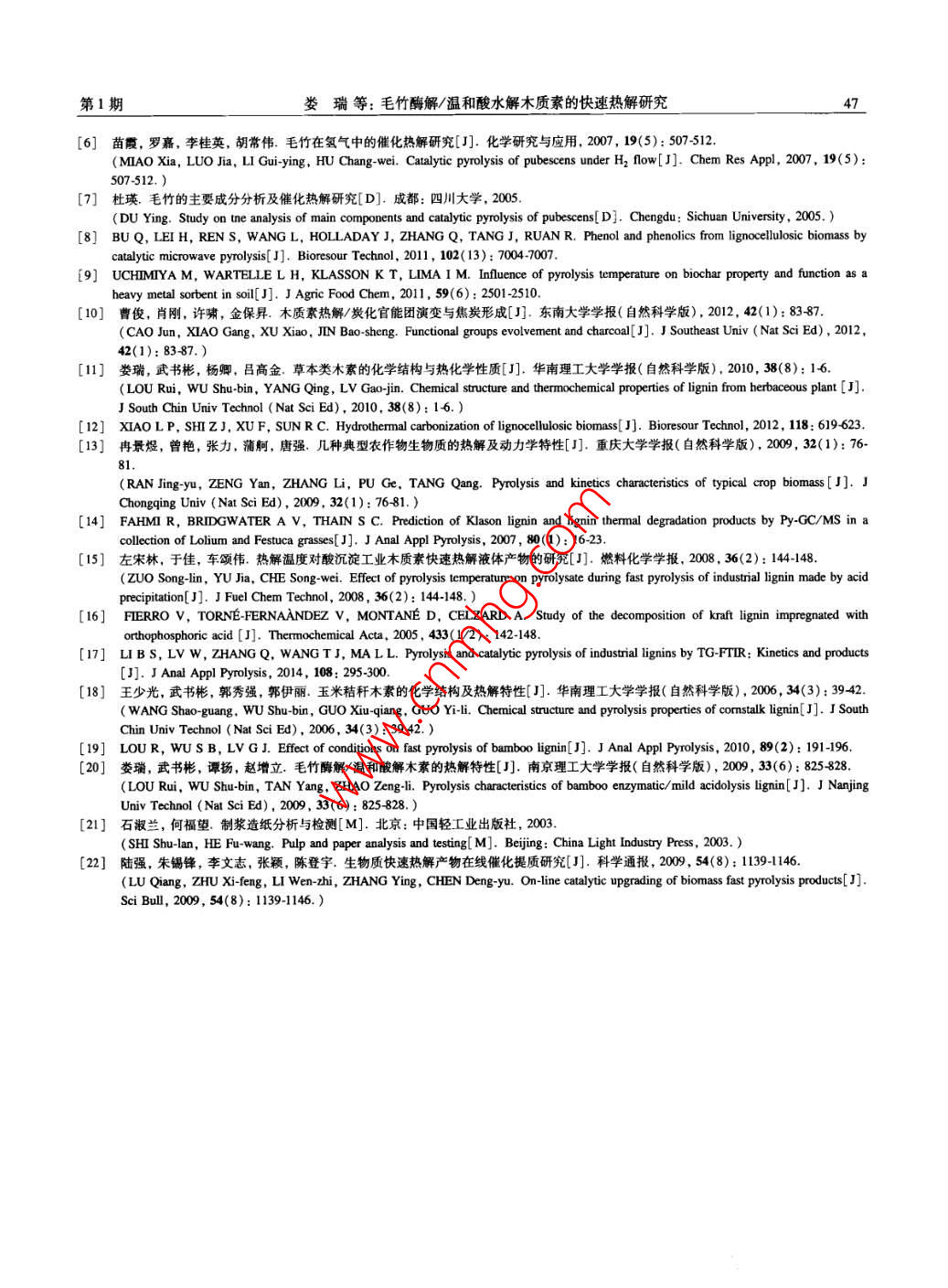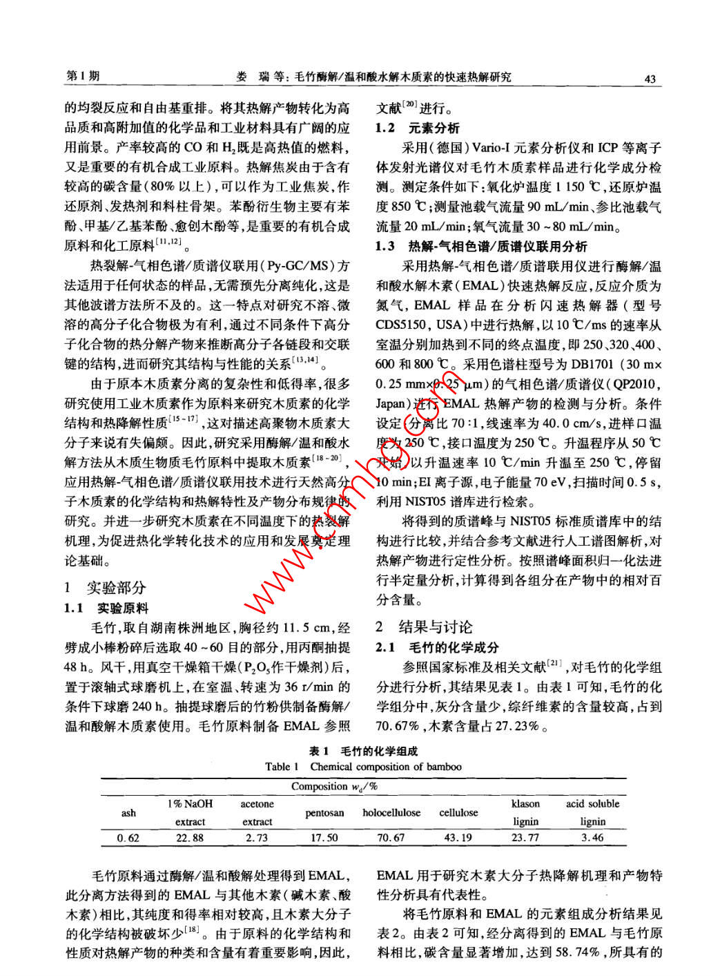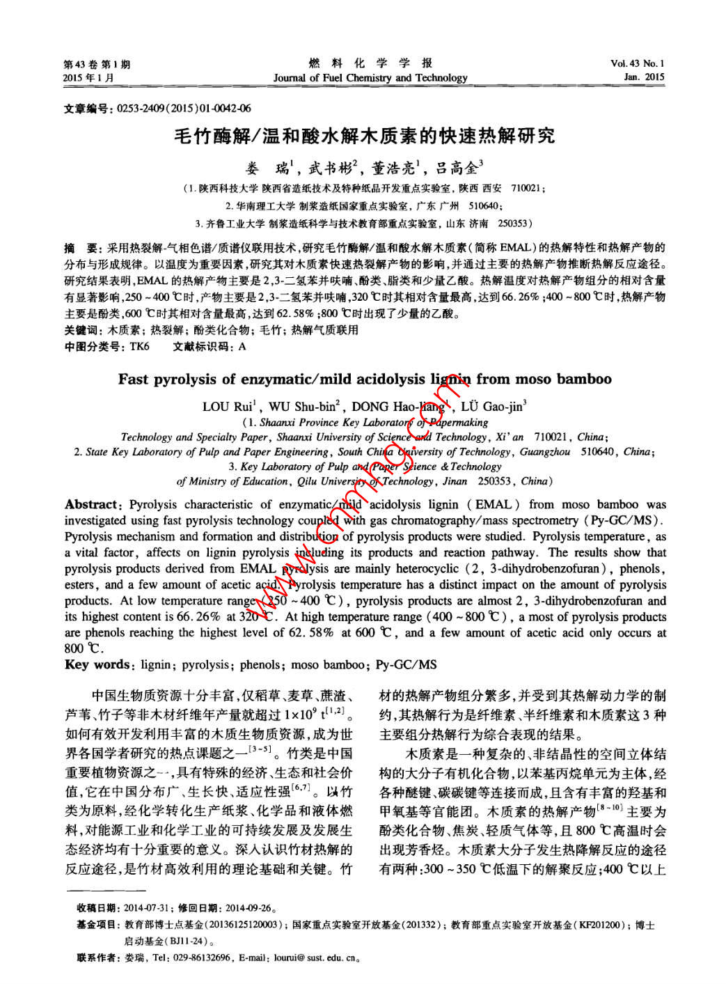 毛竹酶解/温和酸水解木质素的快速热解研究