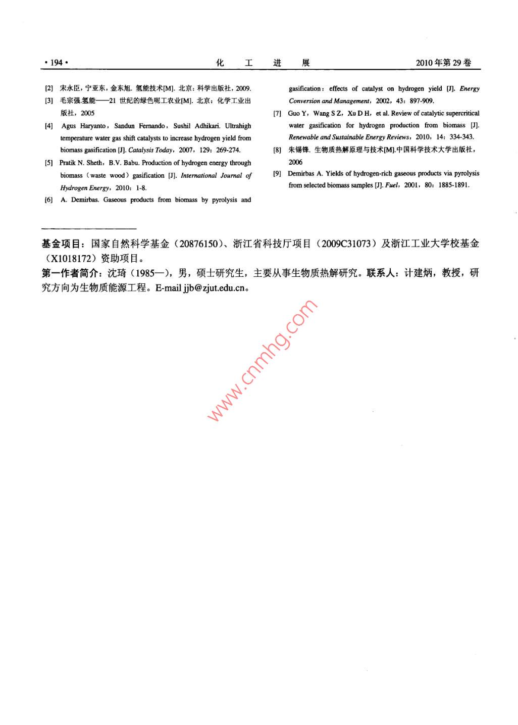 - 作者单位:浙江工业大学化学工程与材料学院,生物质能源工程研究中心
