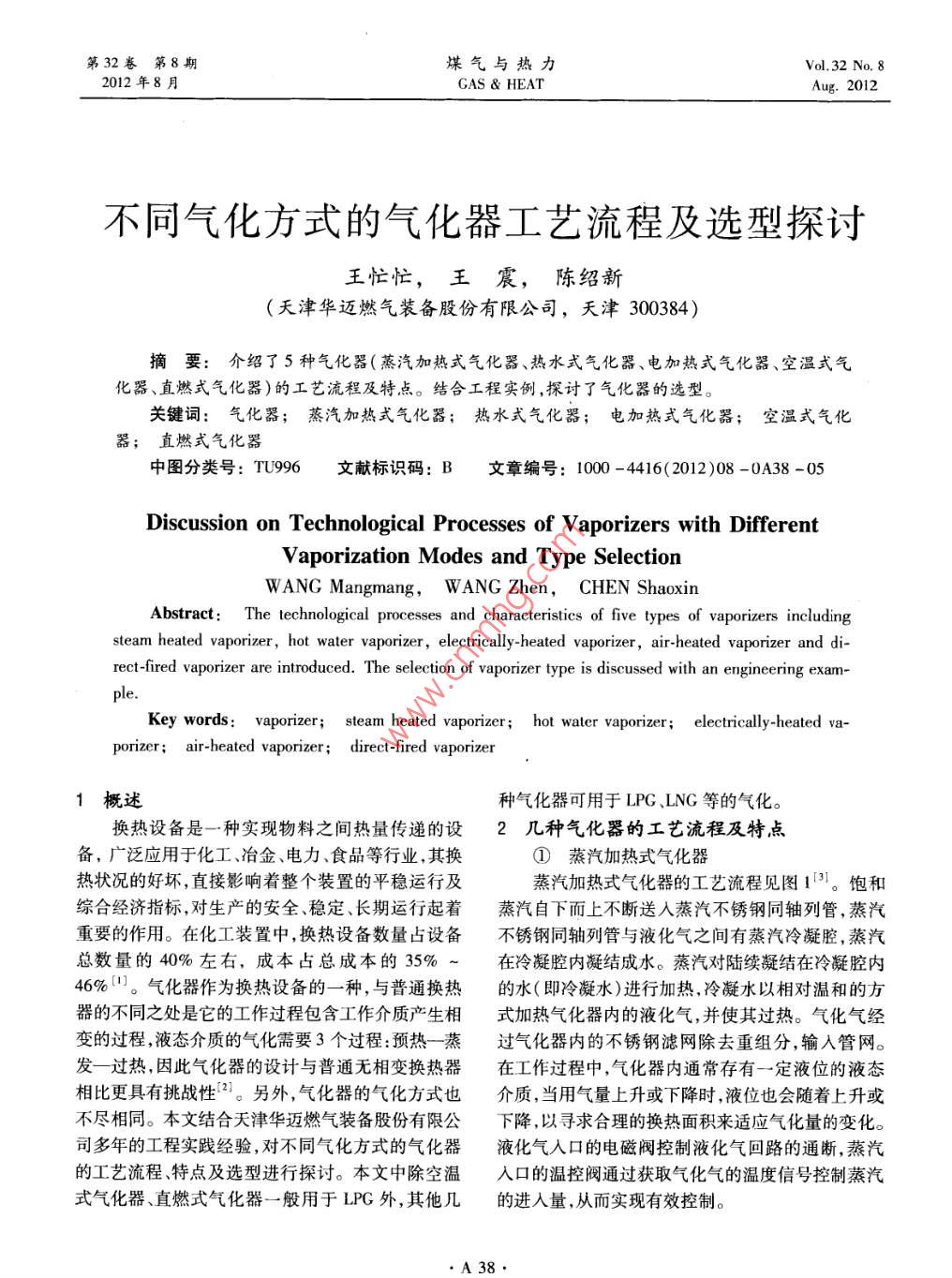- 期刊名字:煤气与热力