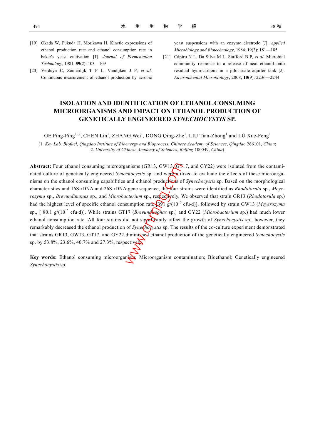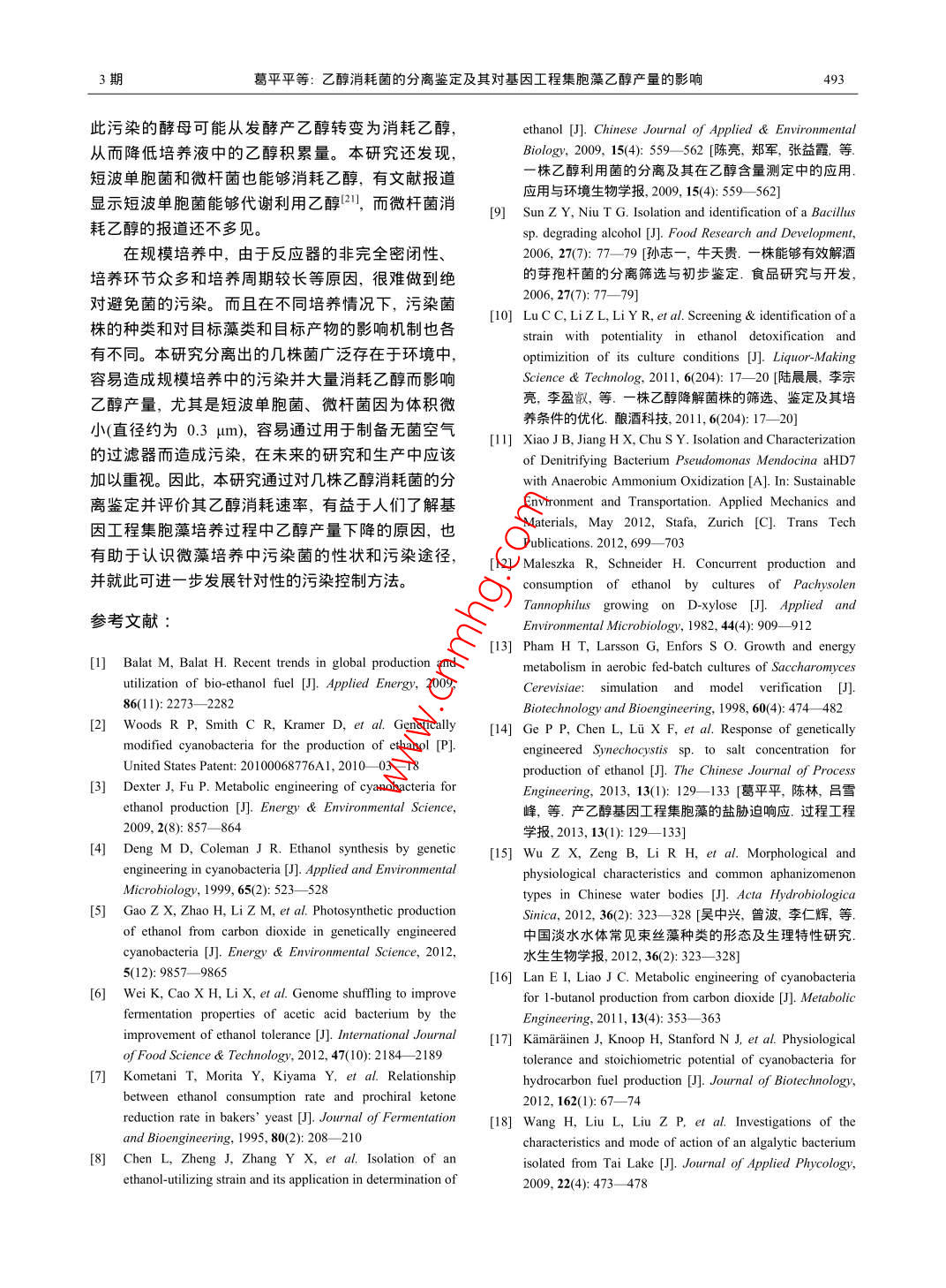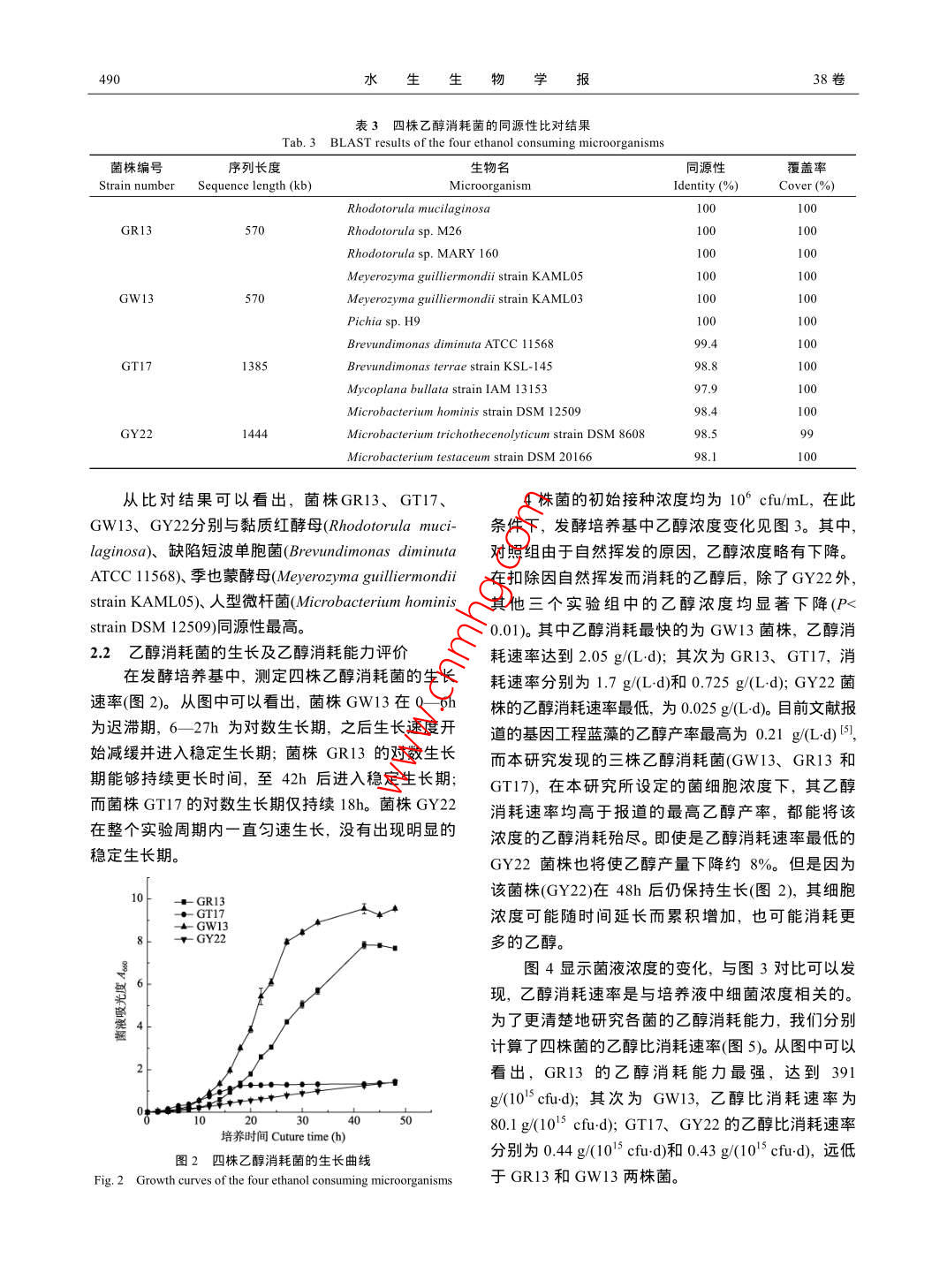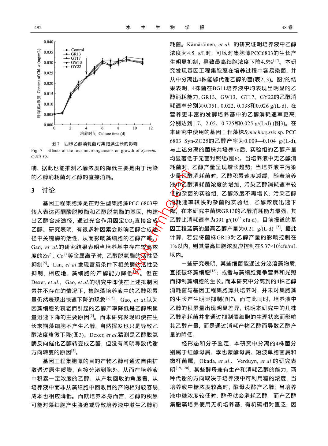 乙醇消耗菌的分离鉴定及其对基因工程集胞藻乙醇产量的影响