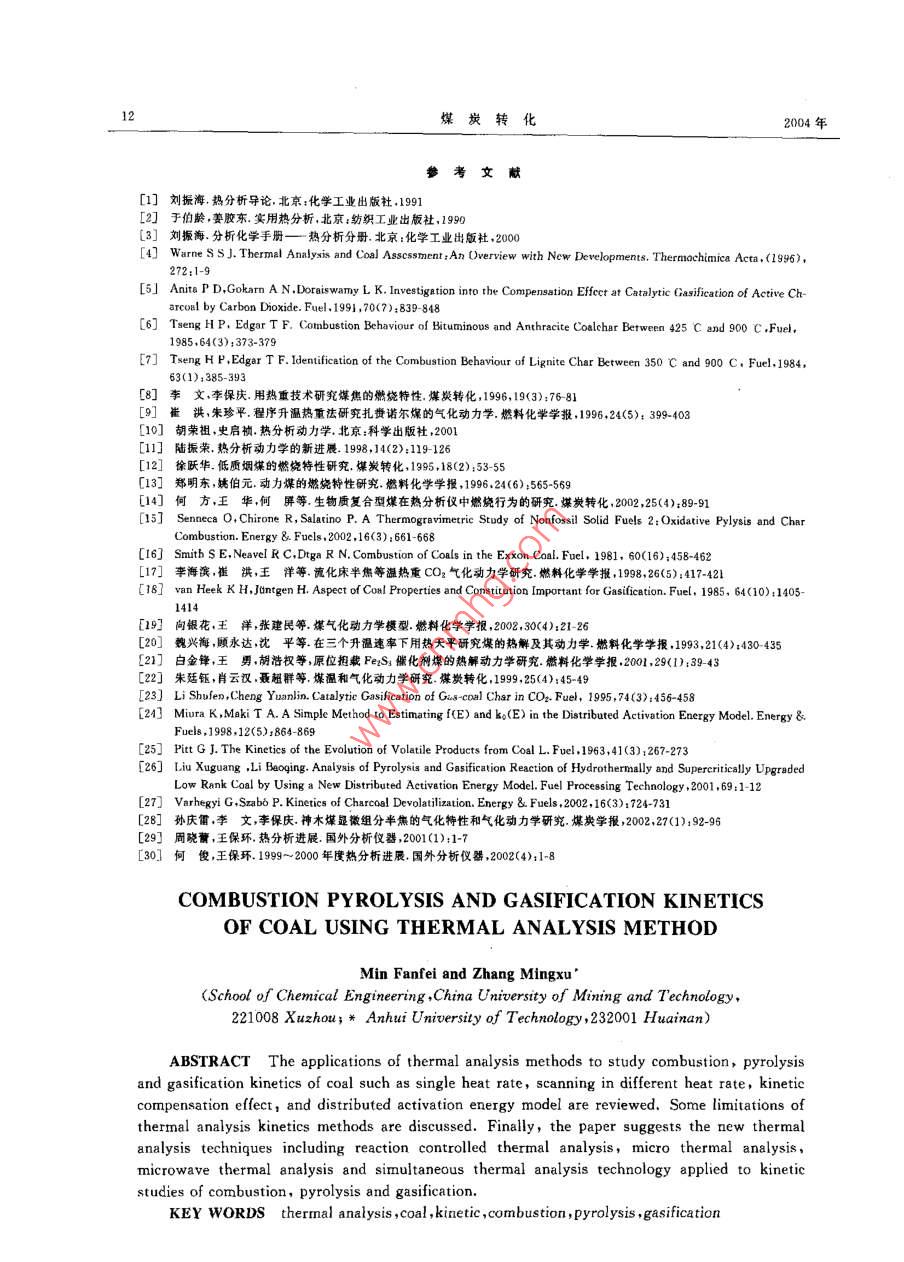 热分析在煤燃烧和热解及气化动力学研究中的应用