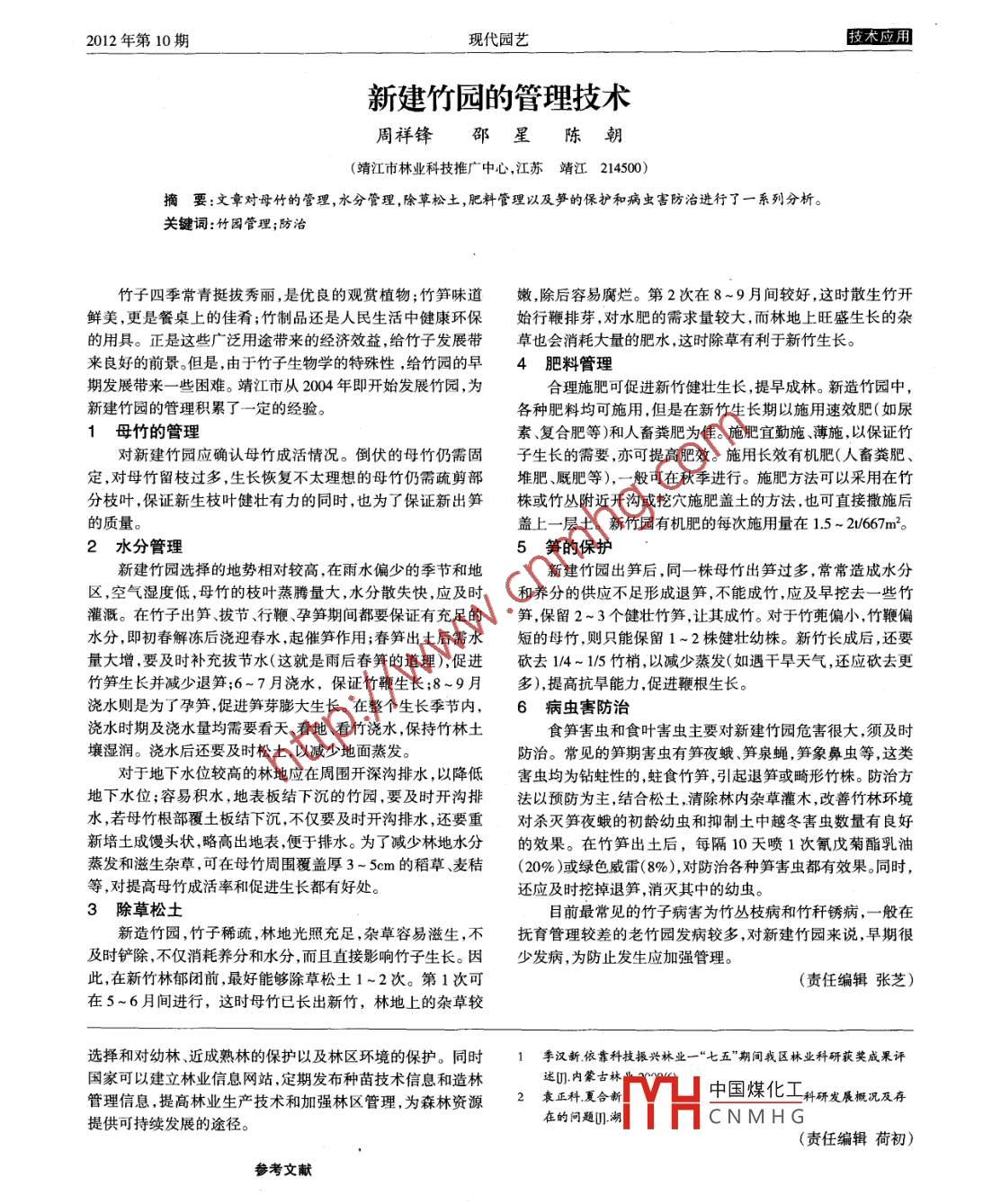 新建竹园的管理技术